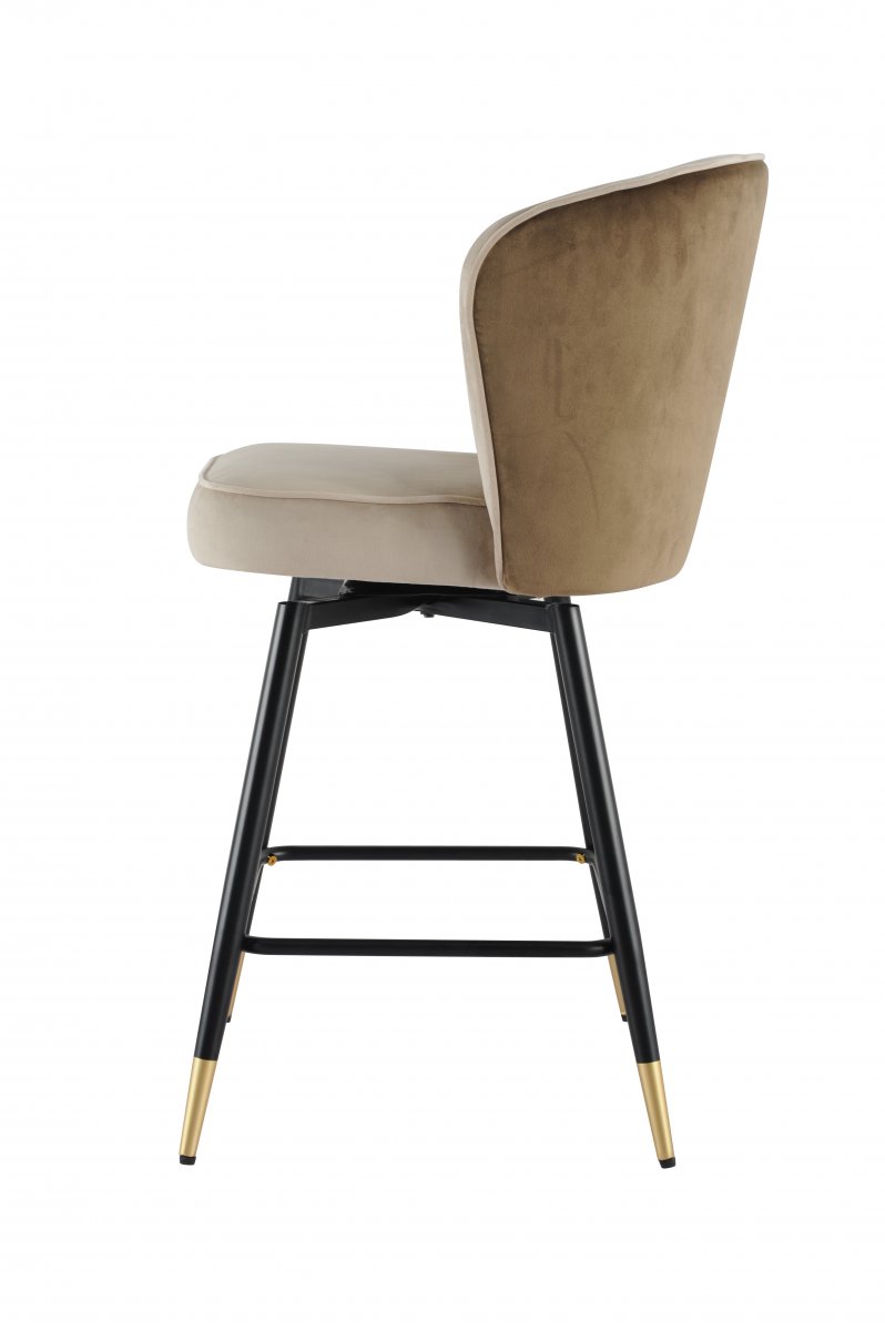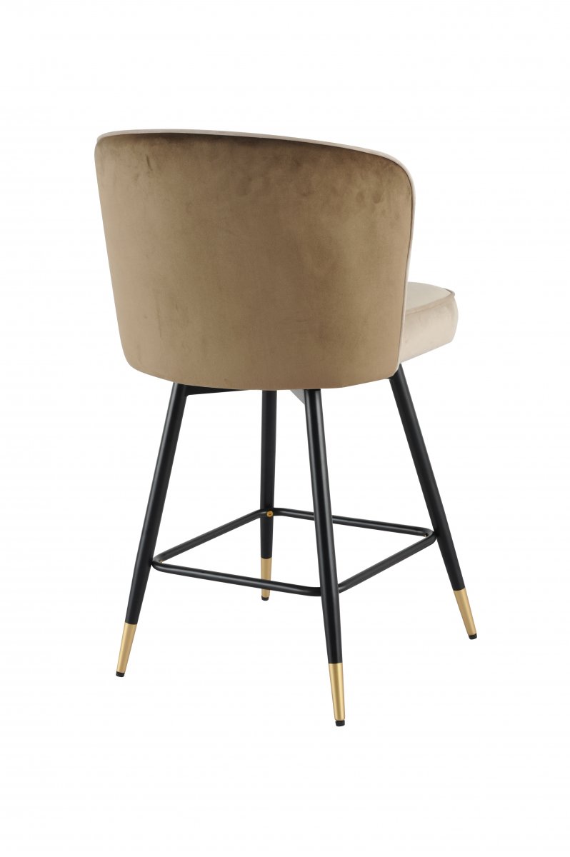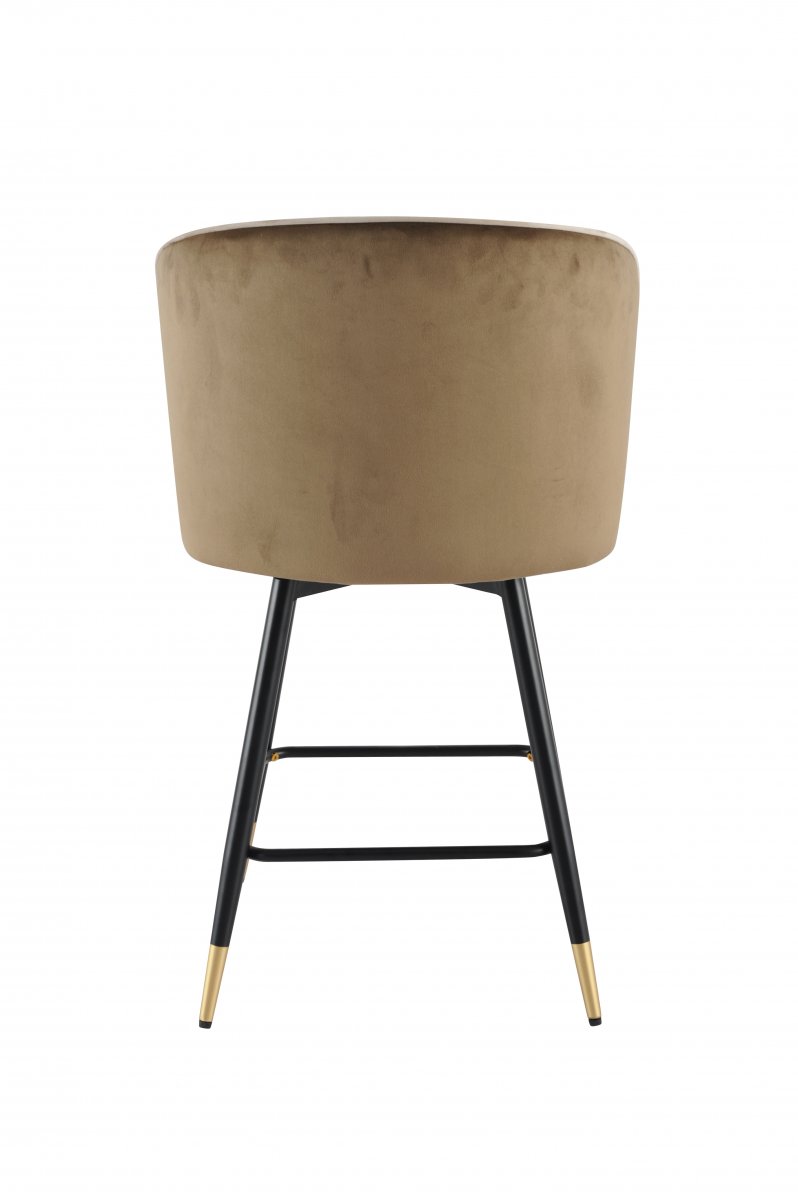 Сиденье и спинка выполнены из мягкого велюра — материала, который придает изделию благородный внешний вид и приятную тактильную мягкость. Спинка коричневого цвета, сиденье - бежевого цвета. Велюр создает ощущение уюта и роскоши, идеально подходит для интерьеров в стиле арт-деко, скандинавский минимализм или лофт с элементами гламура. Цвет «бежевый» универсален: он не теряет актуальности и легко сочетается как со светлыми, так и с темными поверхностями.