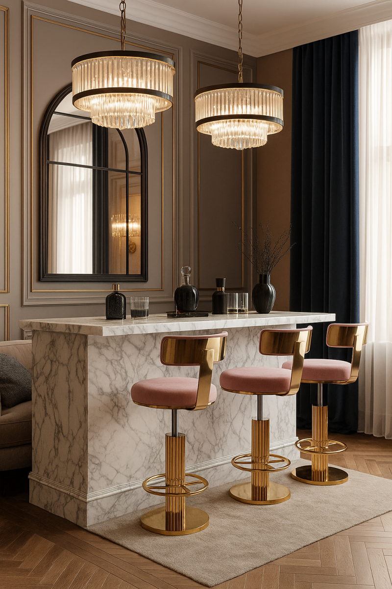 Стул барный Вивиан MC111-PK-2, пыльная роза/глянцевое золото