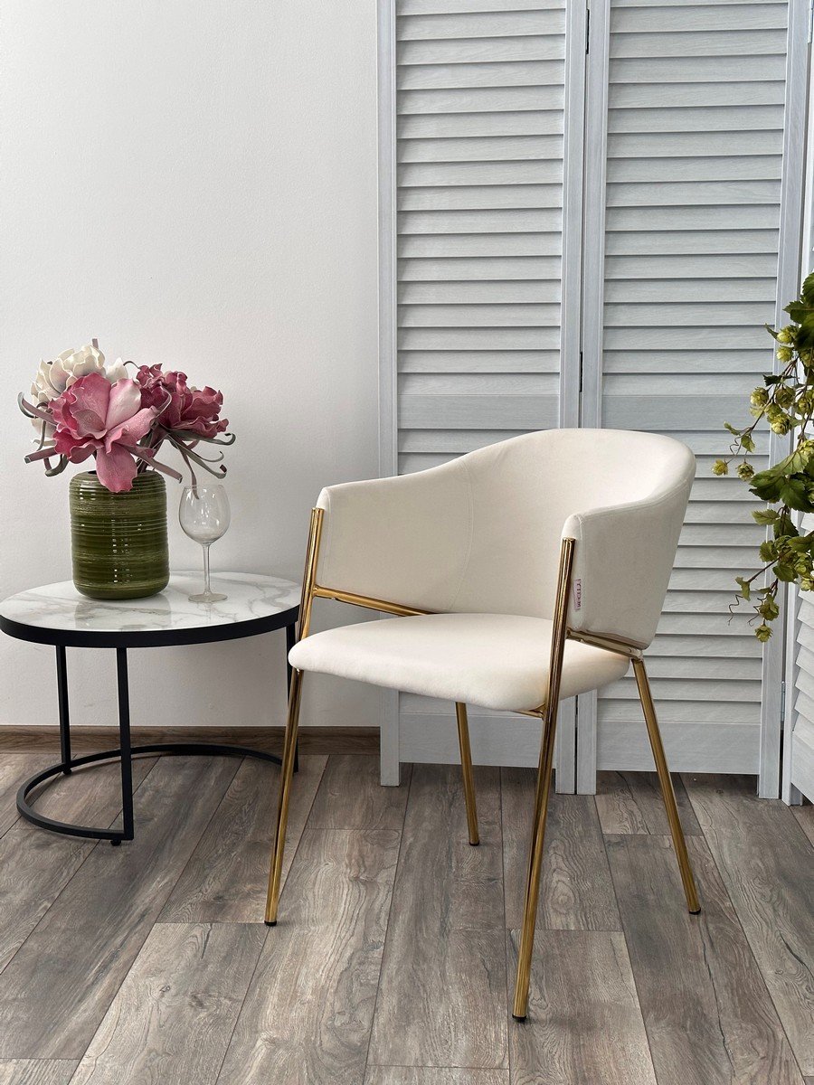 Стул DILL MOMO-01 молочный, велюр беспальчиковый/ золотой каркас М-City