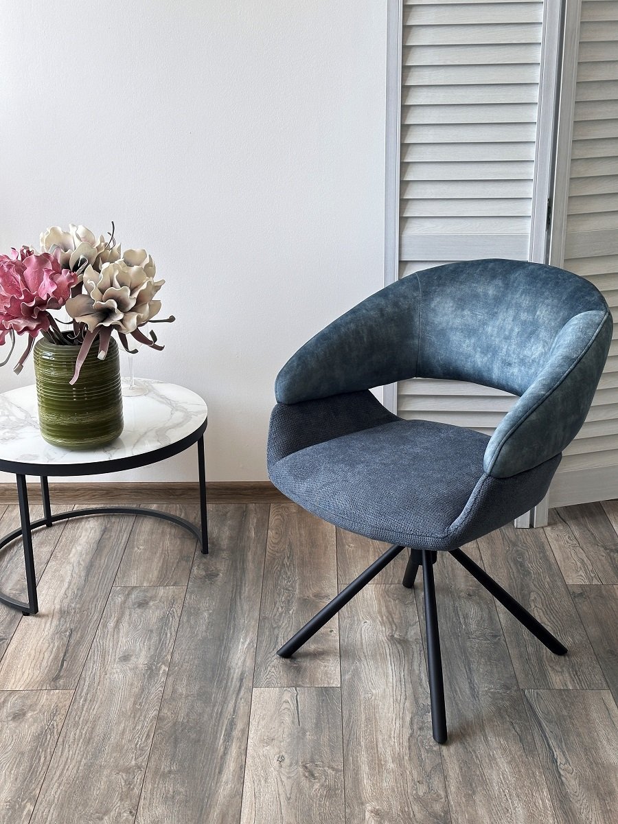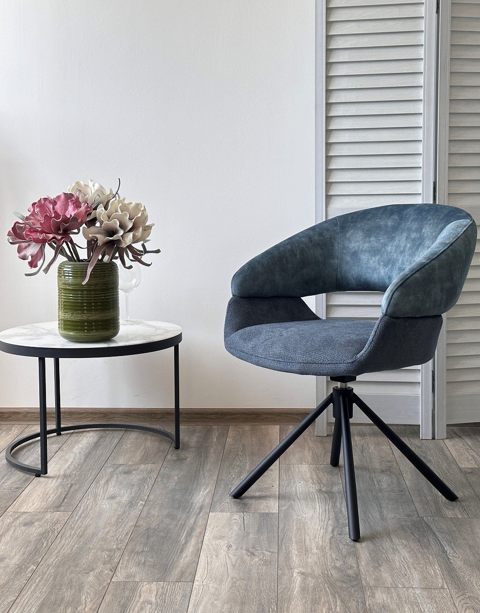 Стул EMBER 360 град. поворот. 7525-56 Синий, велюр/ ENJOY-315 Синий, ткань/ Черный, ®DISAUR