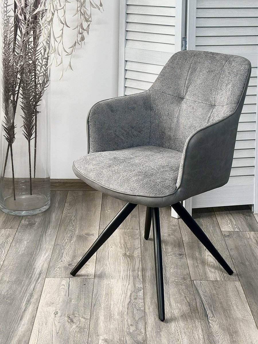 Стул НОРМАН 360 град., цвет BELLA-13/CYPRUS-10 серый, шенилл/замша / черный каркас М-City