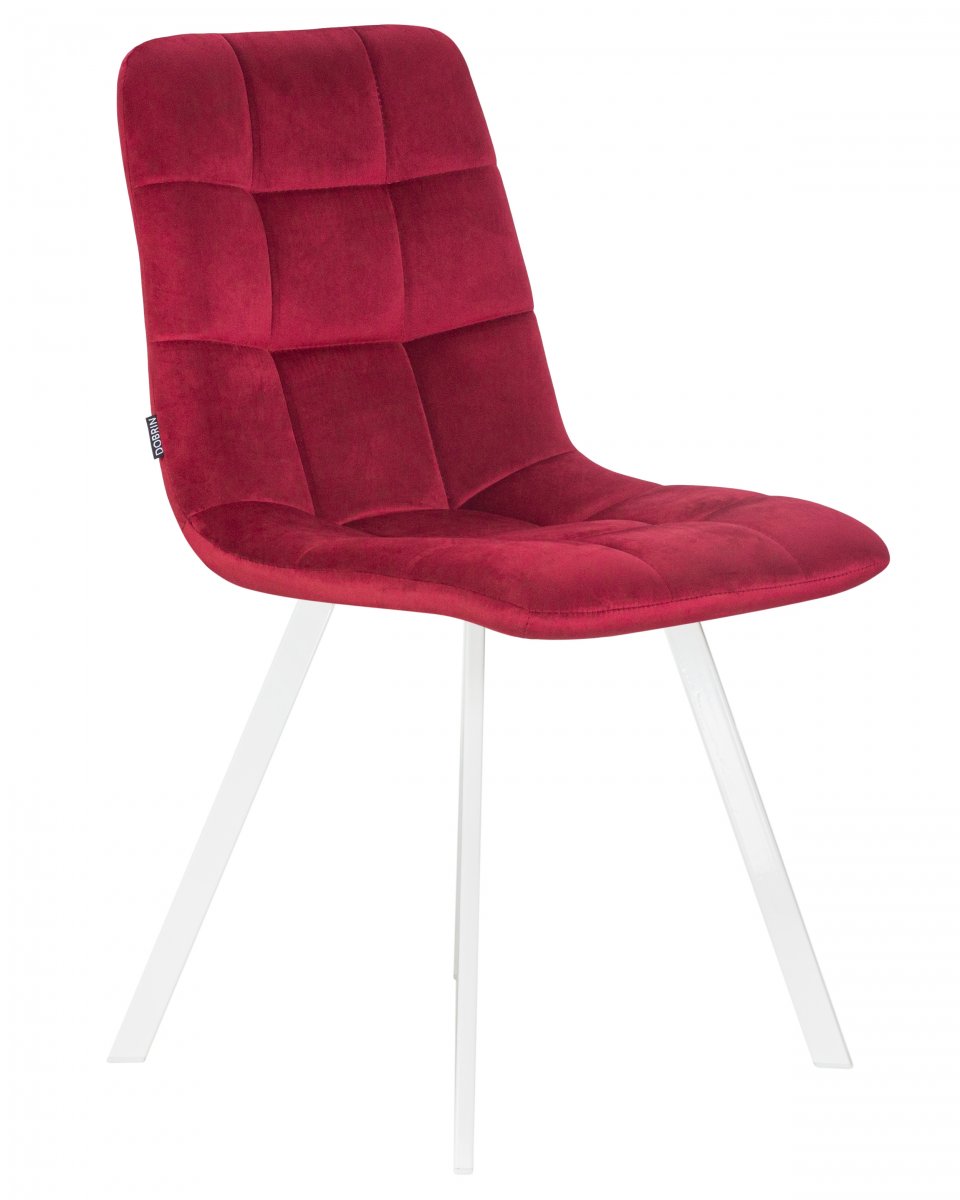 Стул обеденный DOBRIN ALEX SQUARE, белые ножки, бордовый велюр (V108-85)