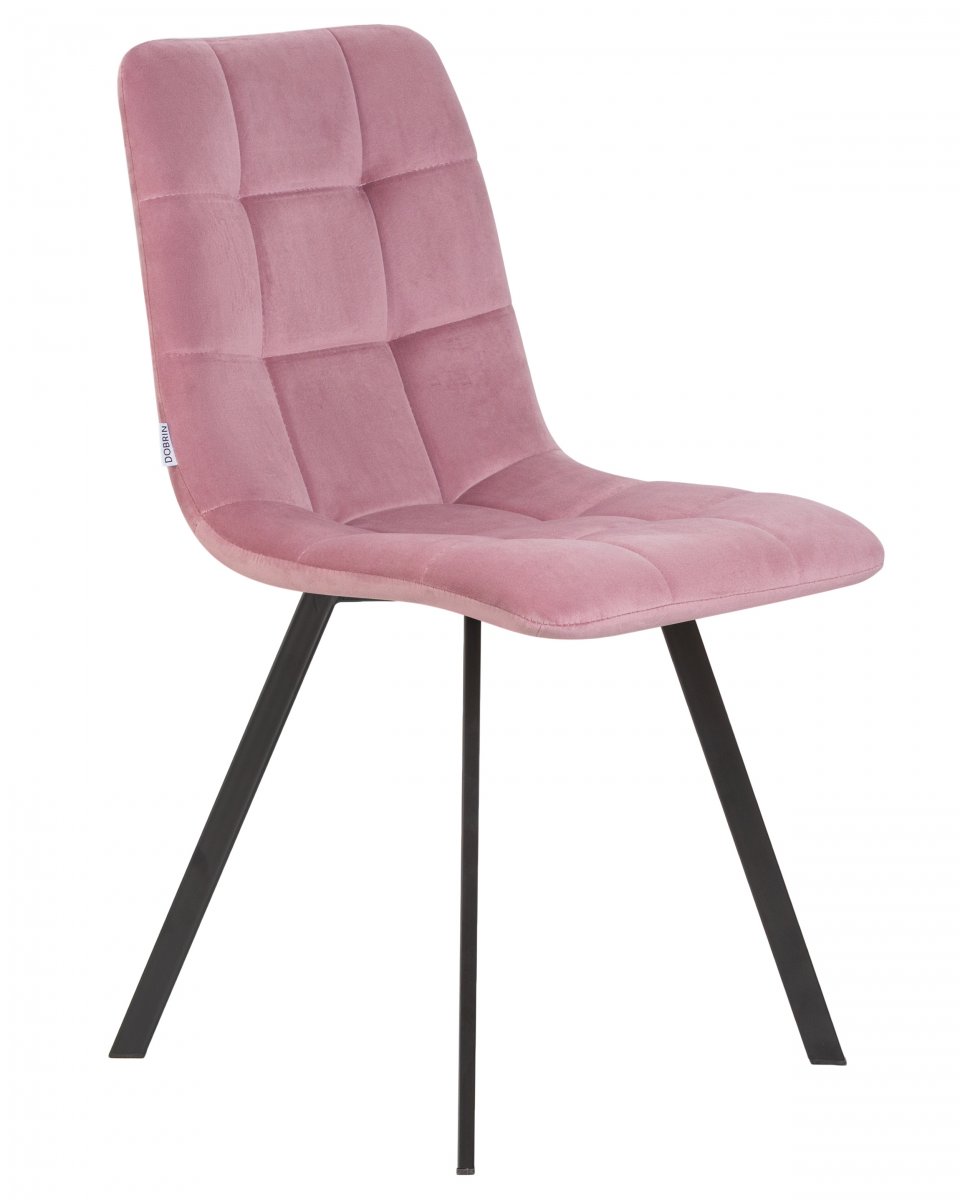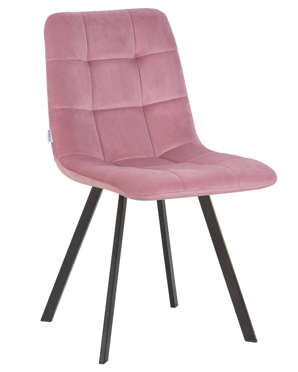 Стул обеденный DOBRIN ALEX SQUARE, черные матовые ножки, розовый велюр (V108-15)