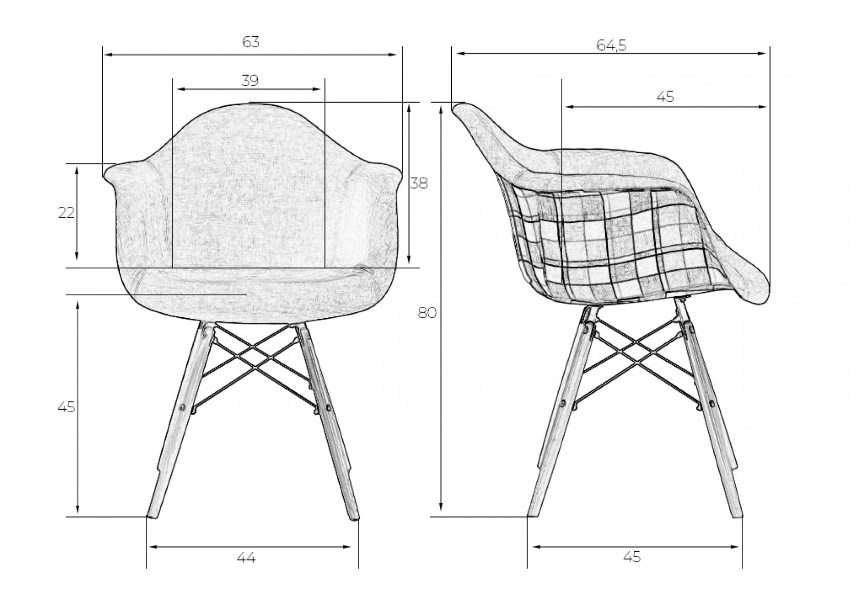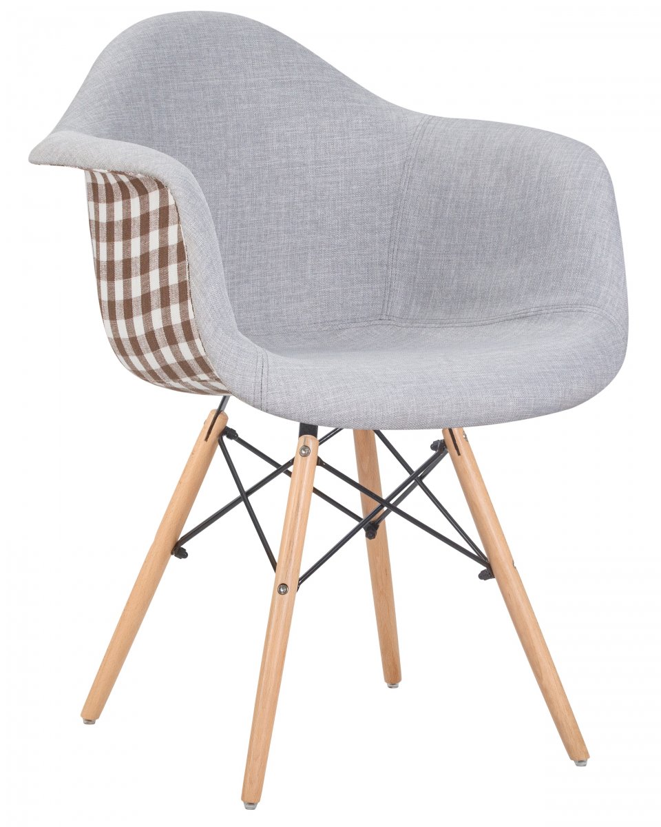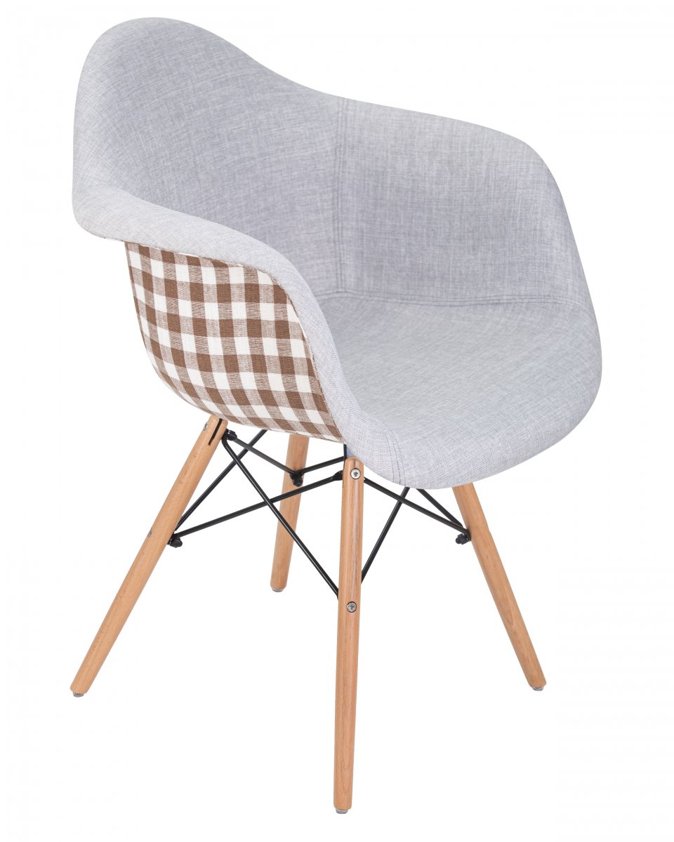 Стул обеденный DOBRIN DAW MONICA (ножки светлый бук, сиденье 009 коричневая клетка, бежевая ткань)
