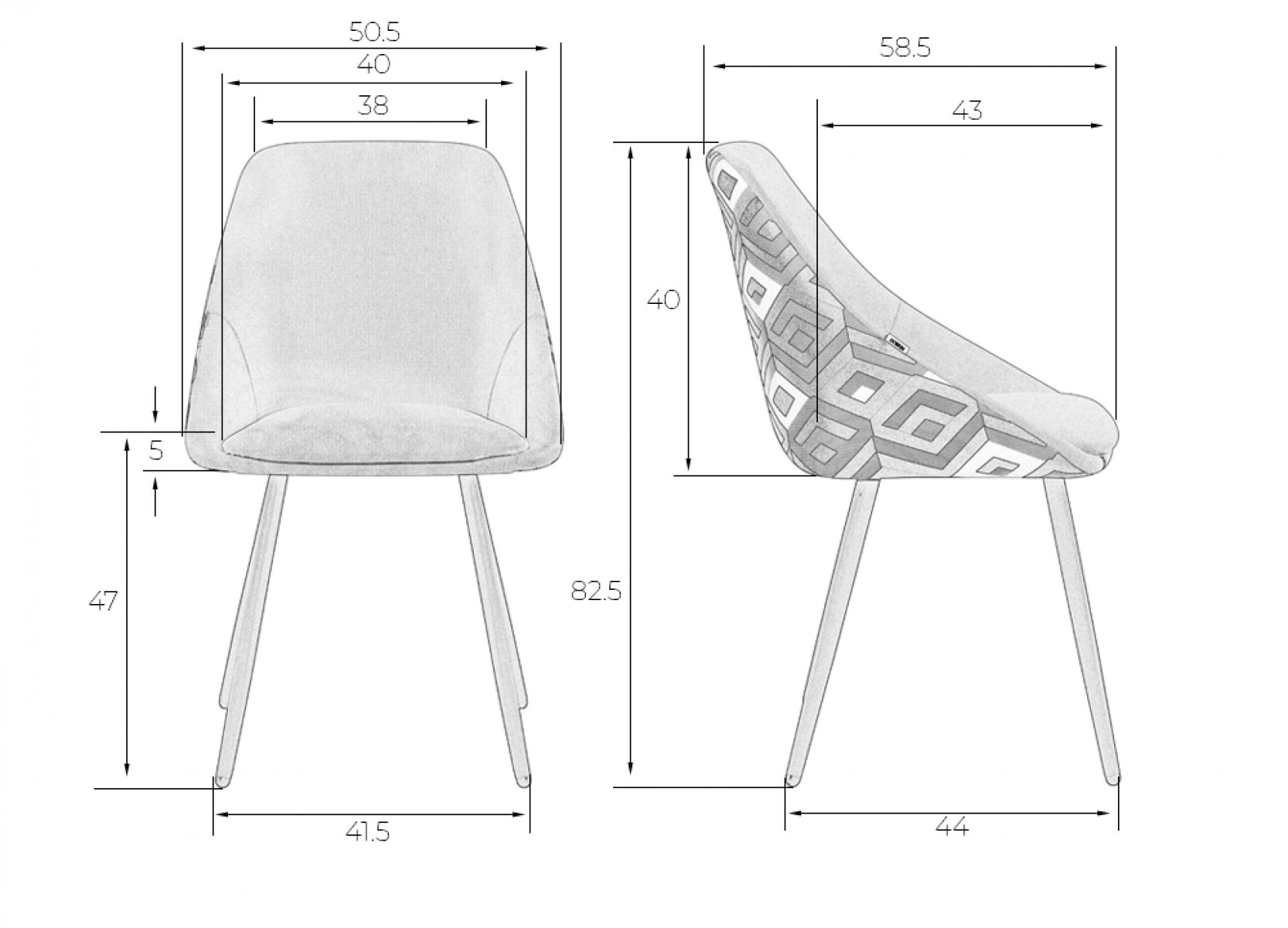 Стул обеденный DOBRIN MARKUS (ЭМАЛЬ ЧЕРНЫЙ МУАР ткань Candy Graphite+Escada Ochre)