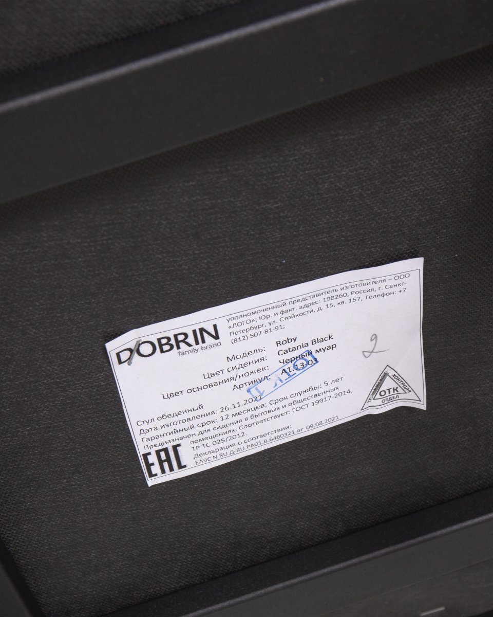 Стул обеденный DOBRIN ROBY (ЭМАЛЬ ЧЕРНЫЙ МУАР велюр Catania Black)