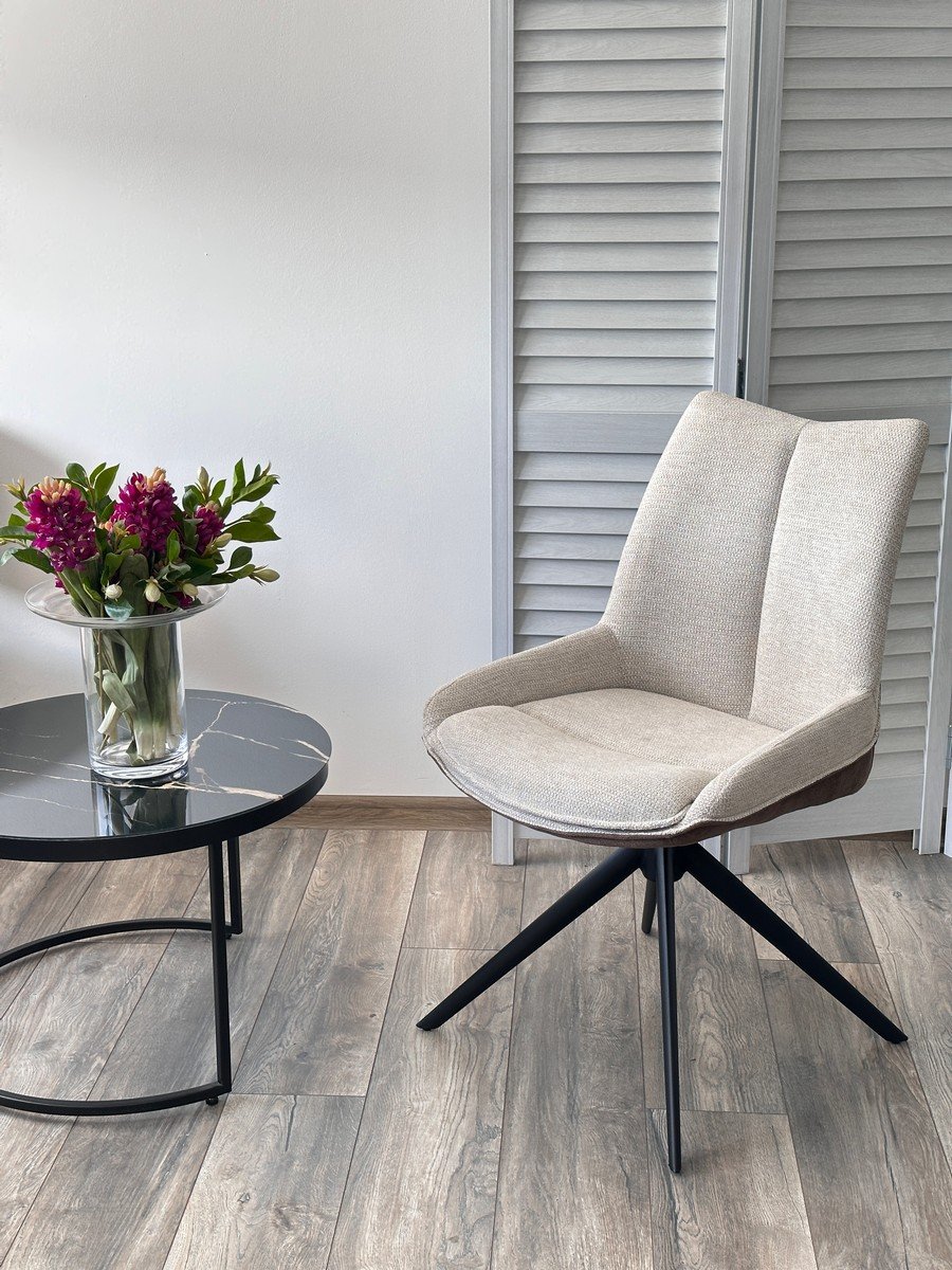 Стул OSKAR 360 град. поворот. KN01-05 Бежевый/ BZ1046-21 Коричневый/ Черный, ®DISAUR