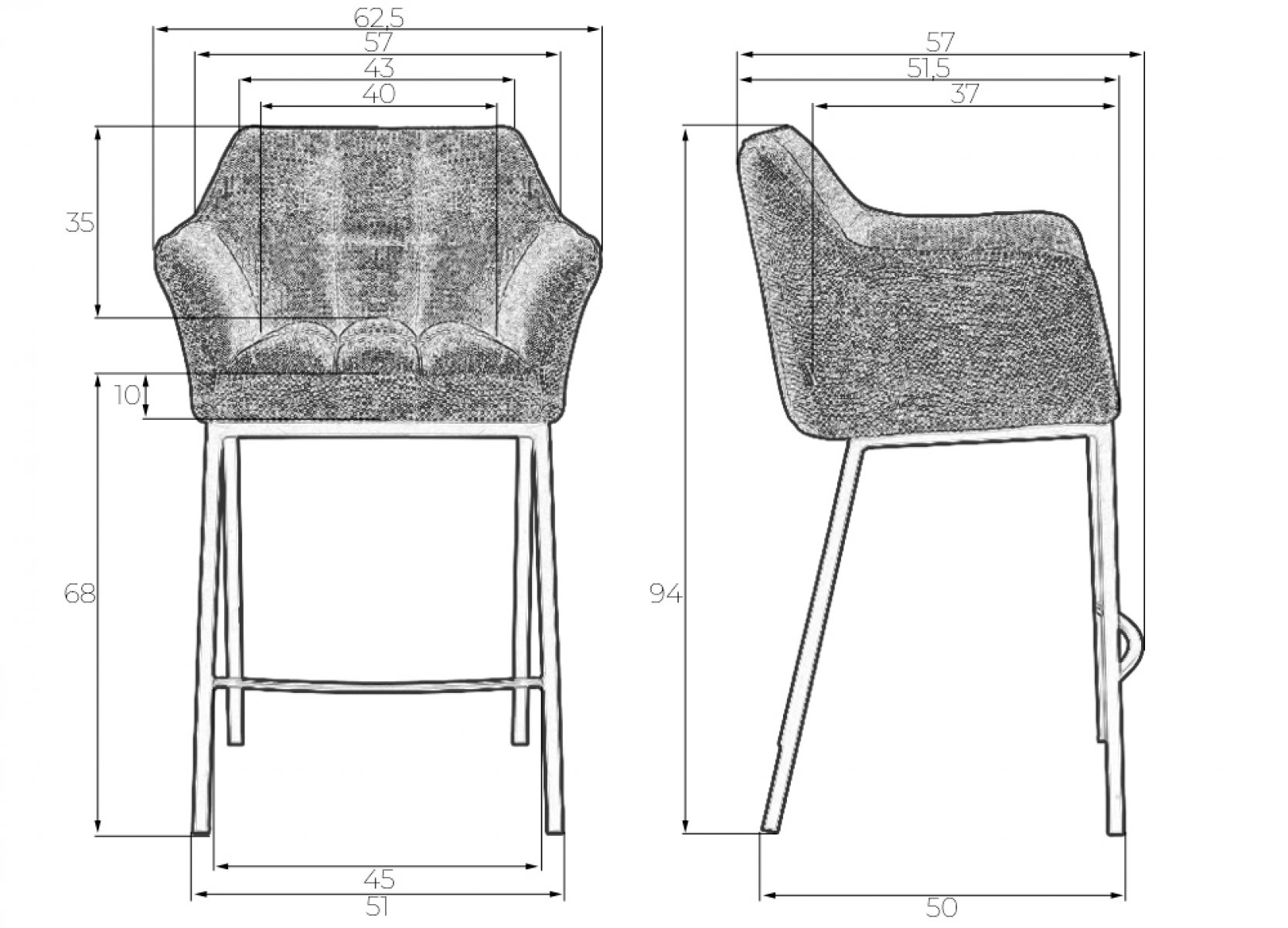 Стул полубарный DOBRIN LUCAS COUNTER, серая ткань (F-22)