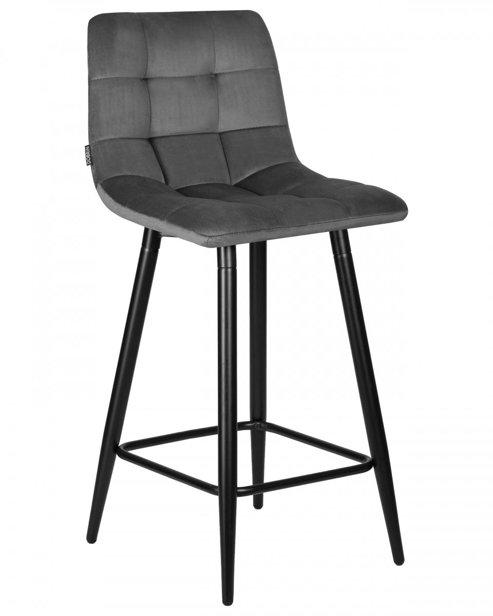 Стул полубарный DOBRIN OLIVIA (черные матовые ножки, темно-серый велюр (108-91))