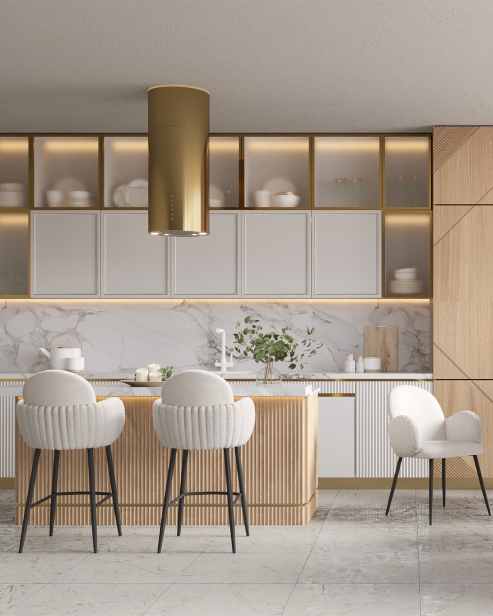 Стул полубарный Wave Stripes букле белый
