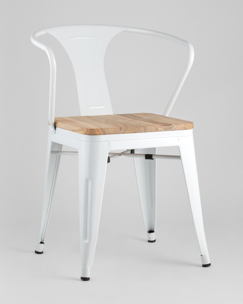 Стул TOLIX ARM WOOD с подлокотниками белый