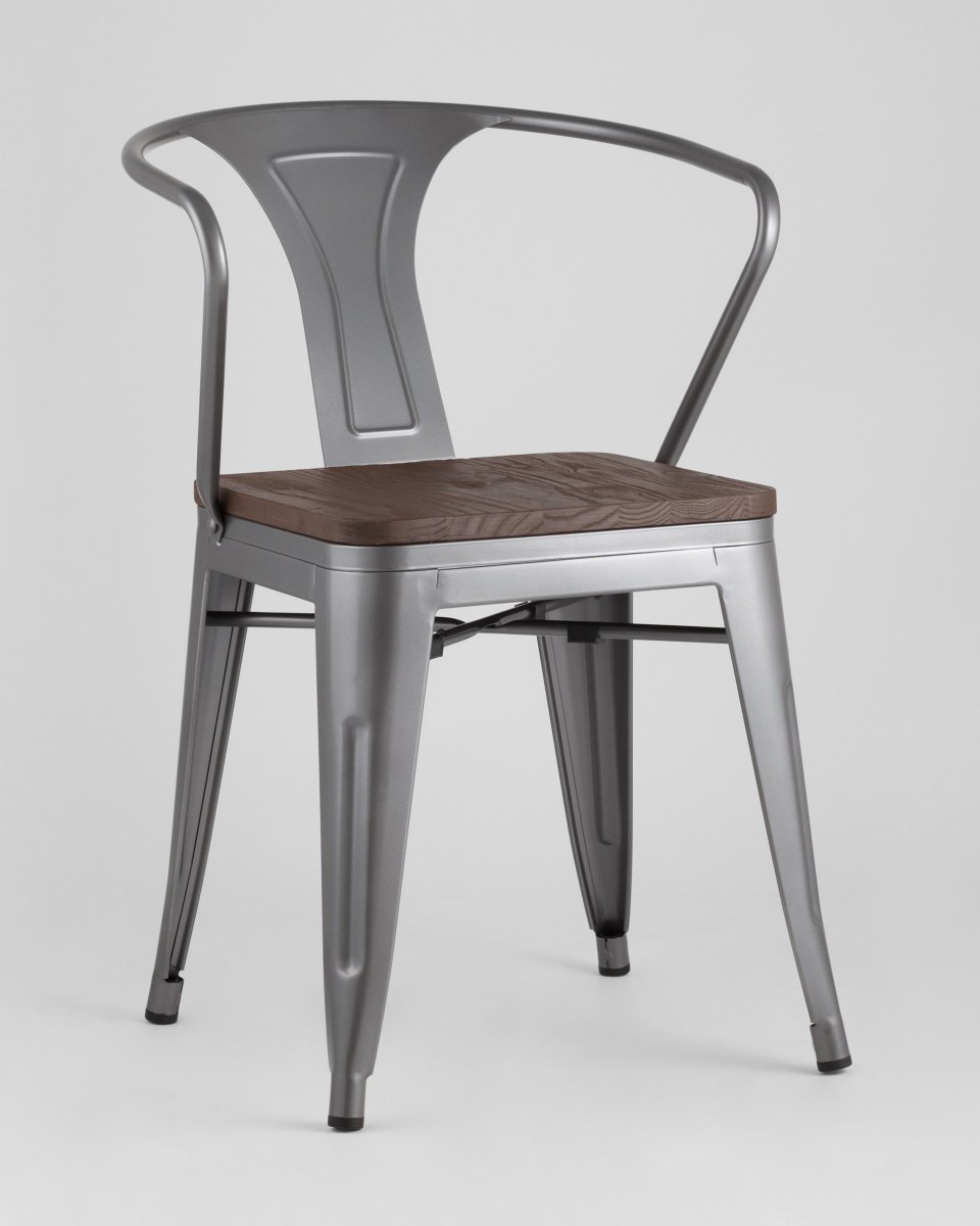 Стул TOLIX ARM WOOD с подлокотниками серебристый