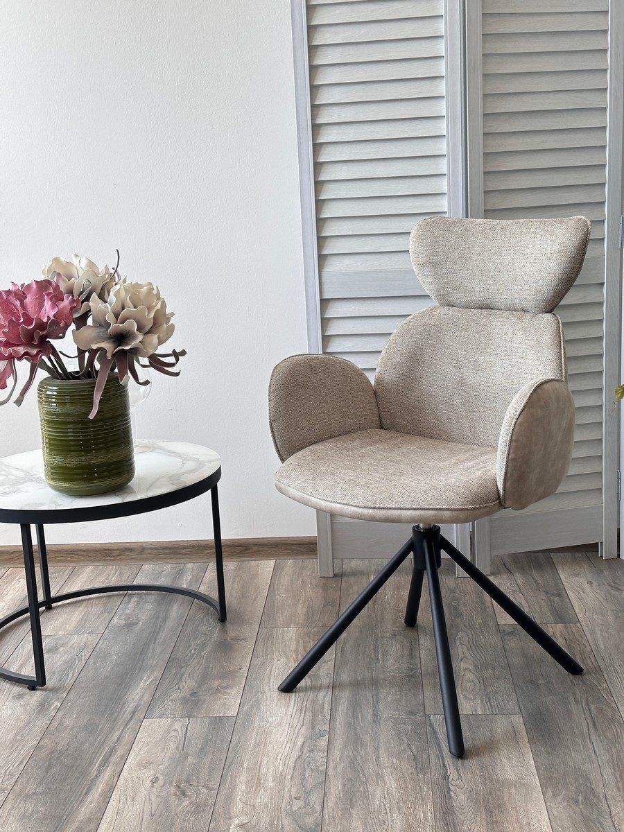 Стул VARDY 360 град.поворот. Brego-31 Бежевый, ткань/ 7525-01 Бежевый, велюр/Черный, ®DISAUR