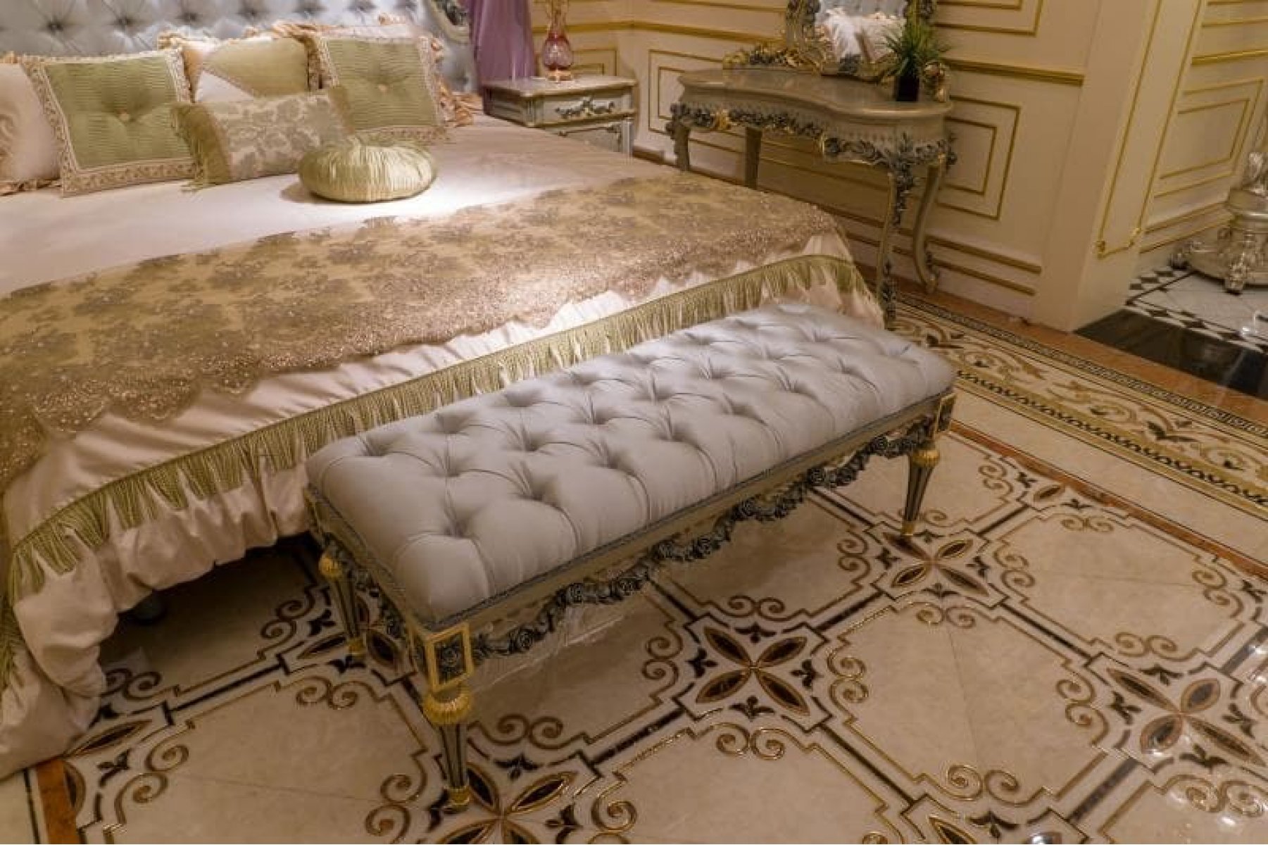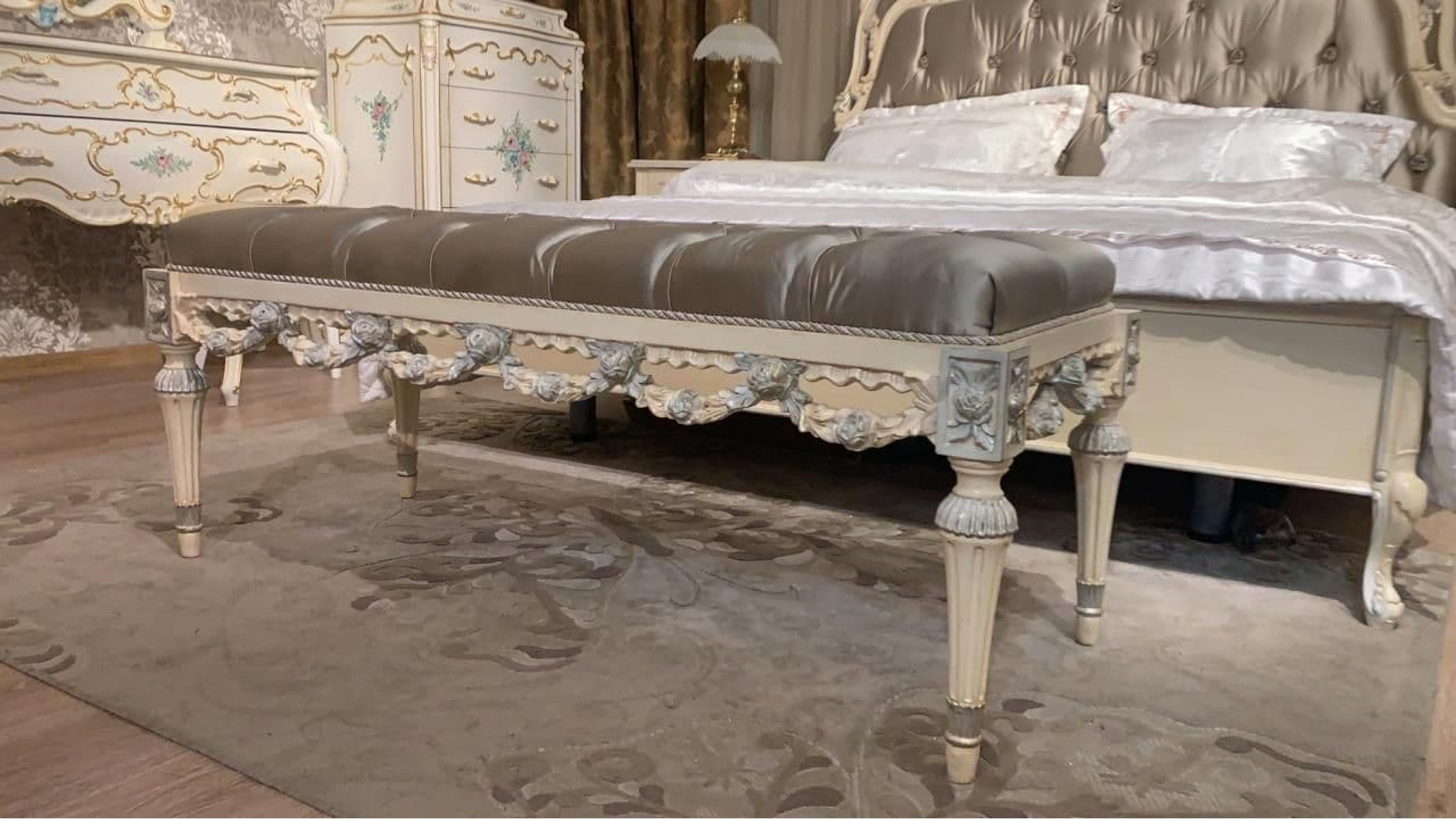 Эксклюзивная коллекция мебели, выполнена в ярчайшем дворцовом стиле Барокко (Людовик XVI) несомненно является воплощением элегантности и изысканности форм. Массив и шпон ценных пород дерева в сочетании с уникальной резьбой и изящной ручной росписью подчеркивают великолепие стиля и придают гарнитурам этой коллекции неповторимую и величественную красоту. Дизайн: Италия. Материал: Массив и шпон ценных пород дерева высококачественный текстиль. Отделка: Ручная резьба, ручная роспись, эмаль.