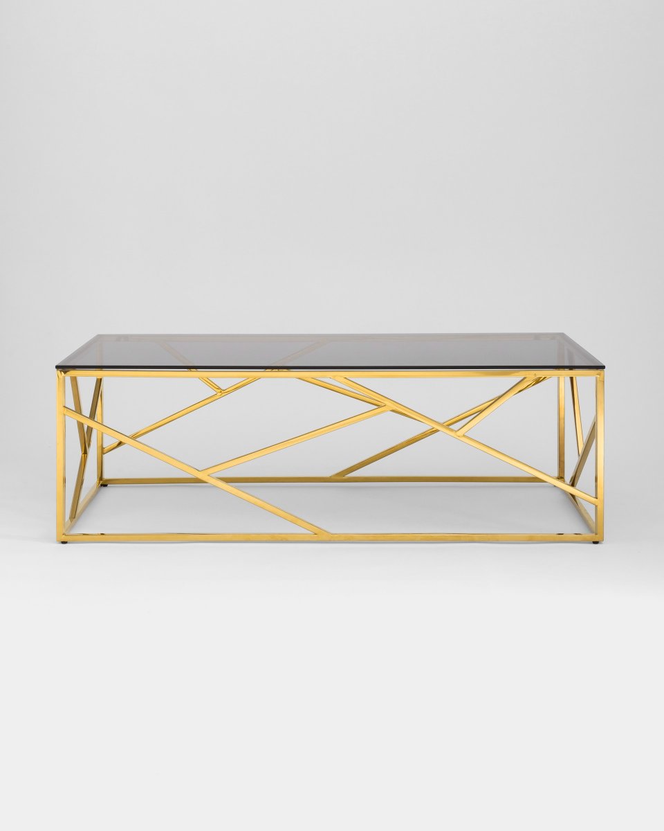 Журнальный стол 120*60 АРТ ДЕКО стекло smoke сталь золото