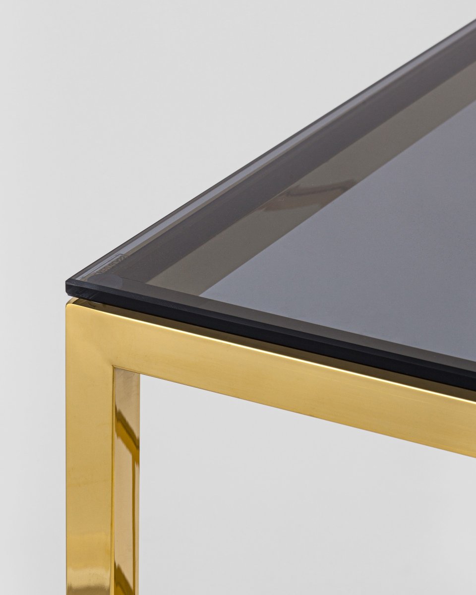 Журнальный столик 55*55 БРУКЛИН стекло smoke сталь золото