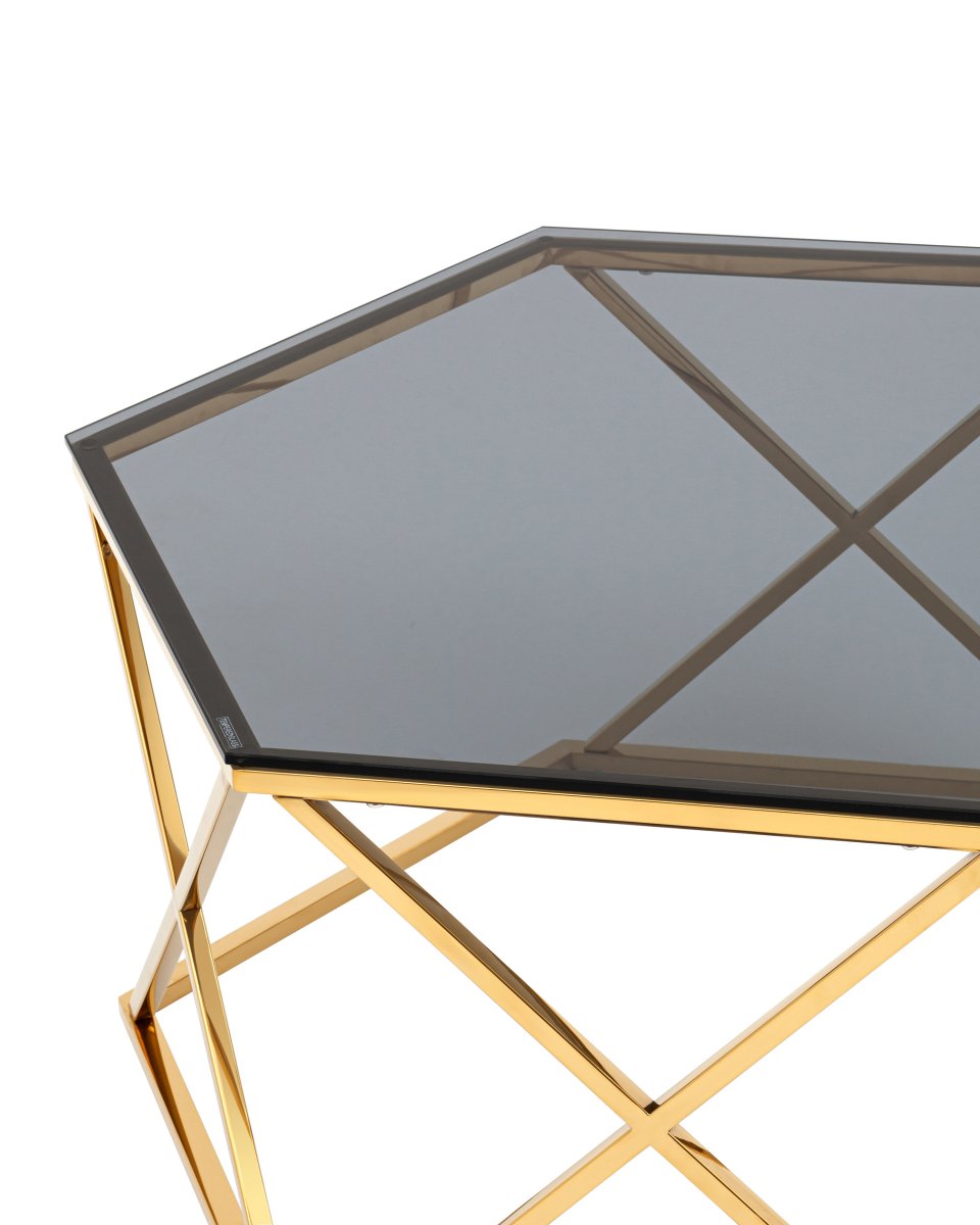 Журнальный столик Круз 93*80 стекло smoke сталь золото