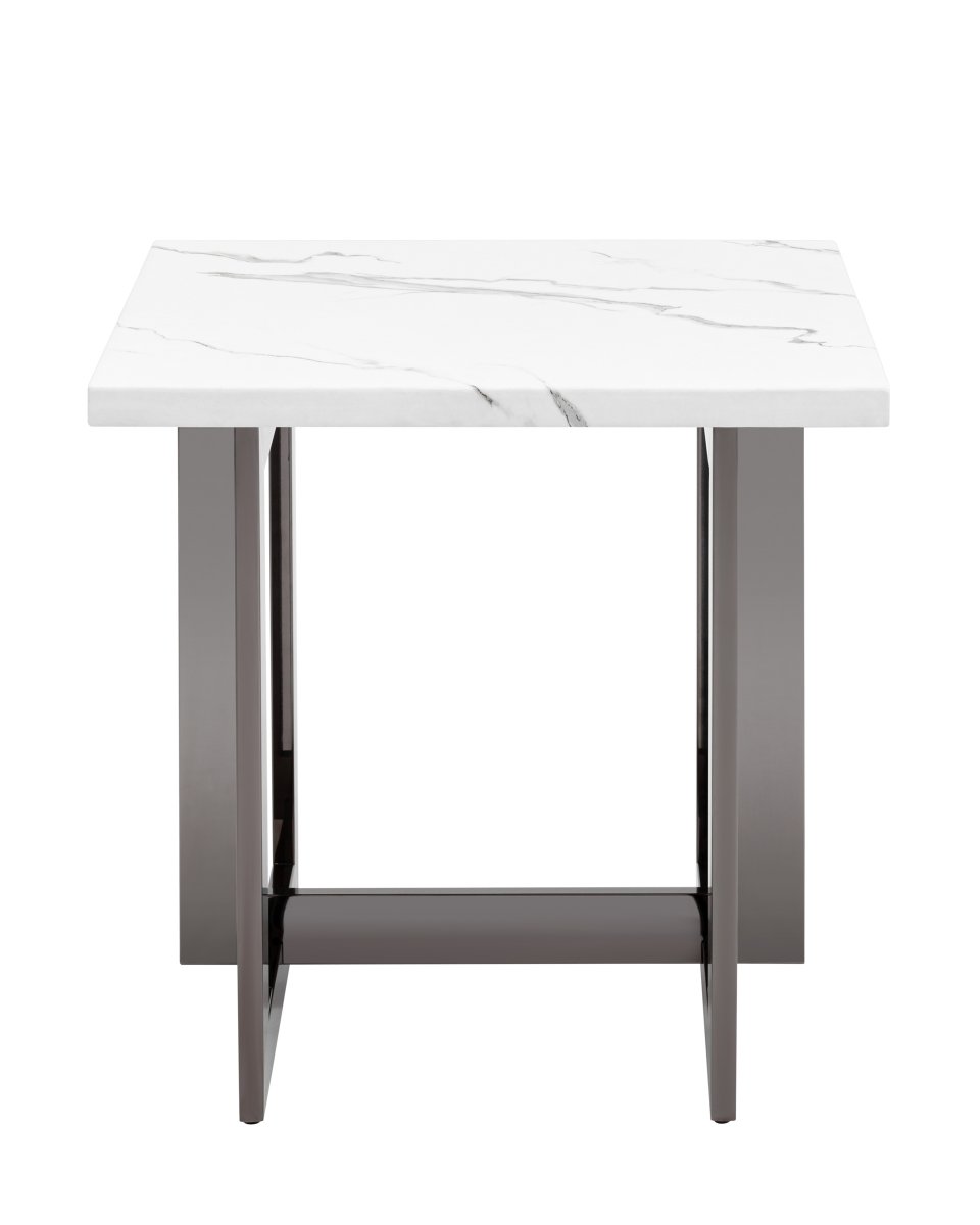 Журнальный столик Нэйтан 61*61 белый мрамор сталь темный хром