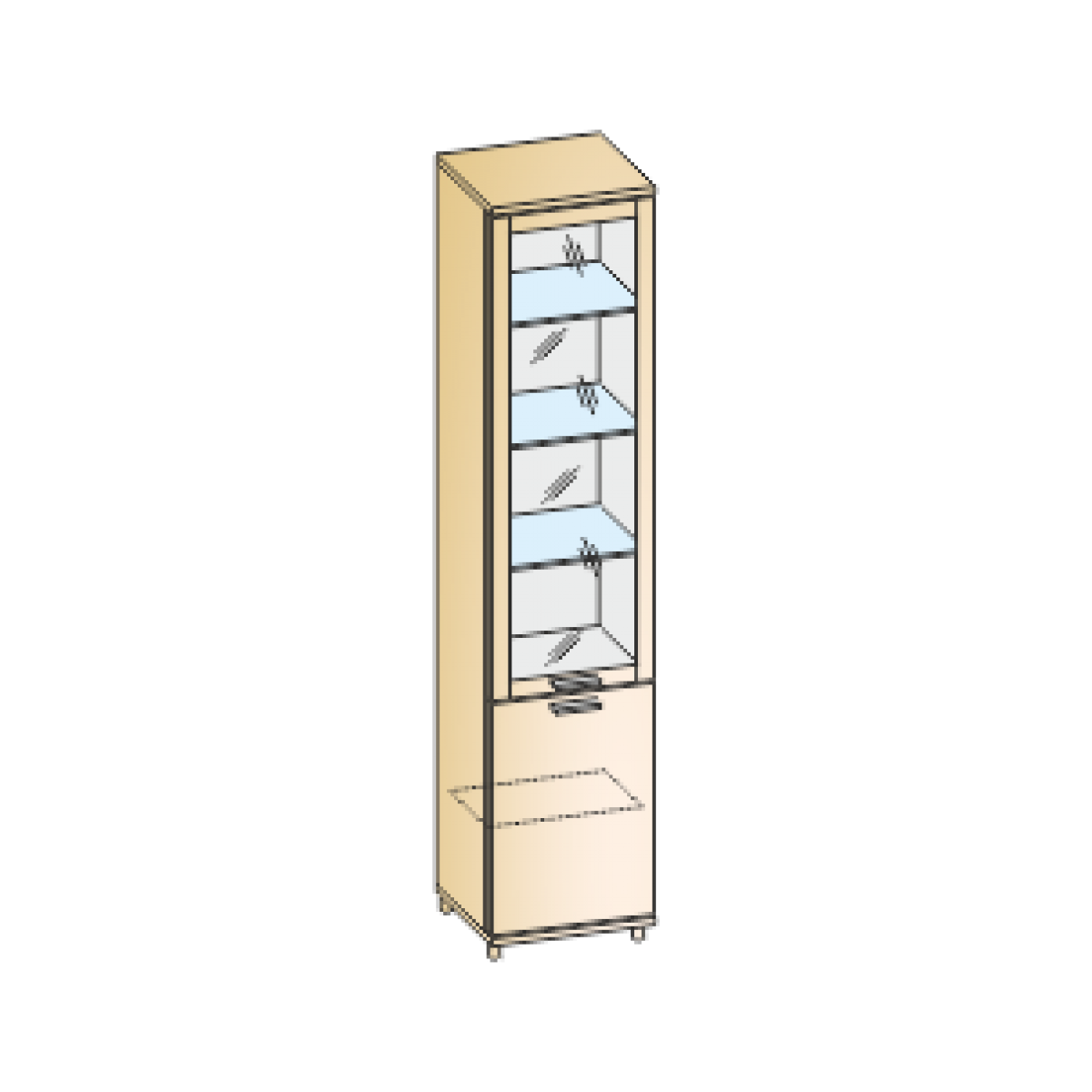 Интересная дизайнерская разработка со стеклянным фасадом и стеклянной боковой стенкой у витрин и антресольных секций стильно выделит интерьер уникальной композицией, а также позволит создавать уникальные буфетные варианты.