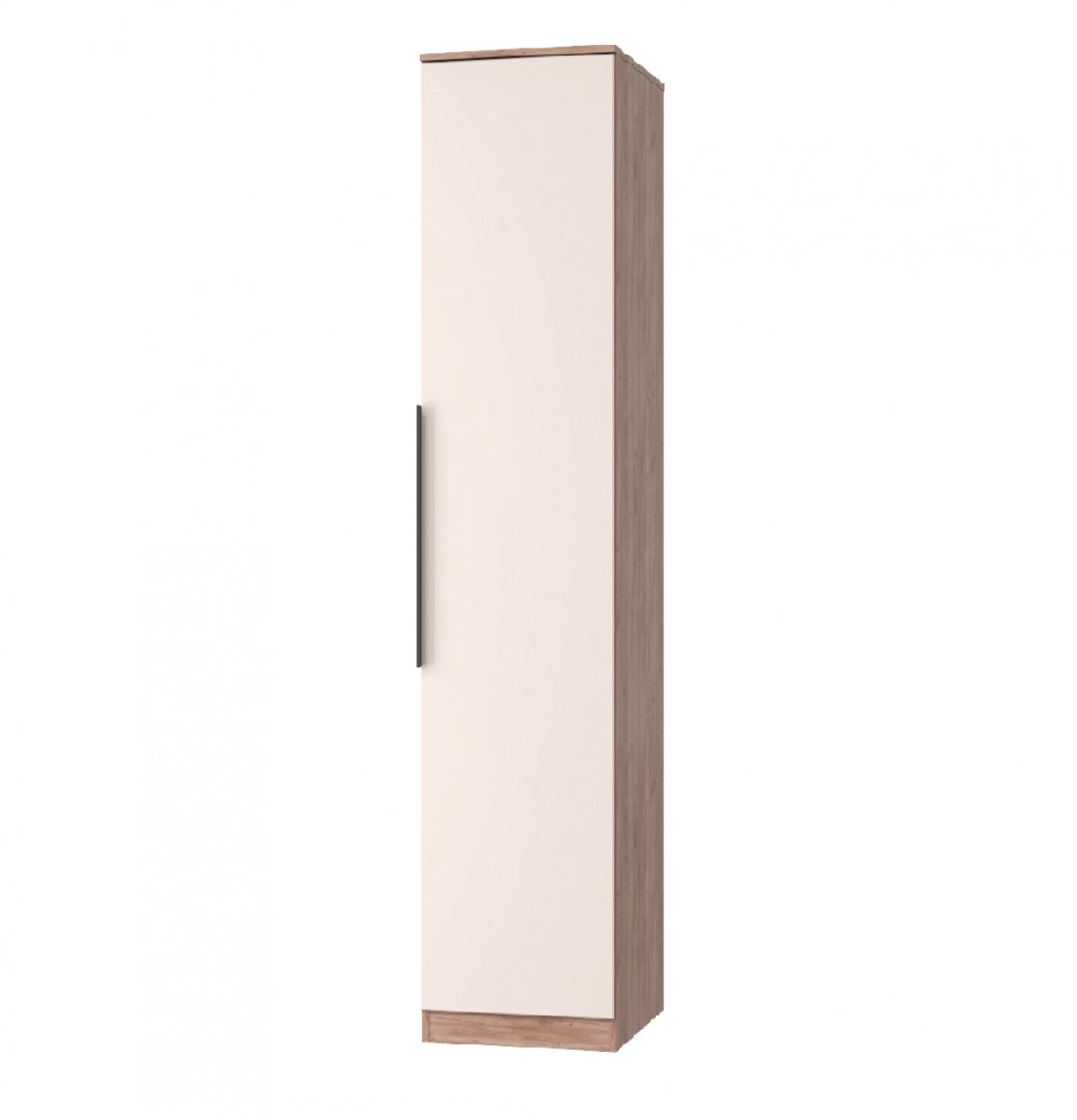 Шкаф для белья и платьев Тоскана - многофункциональный модуль. Благодаря разноплановому наполнению Вы можете использовать его как шкаф для белья, закрепив на удобной высоте комплект полок, или же в качестве места для хранения одежды на плечиках, установив продольную штангу. Имеет ширину всего 45 см, поэтому Вы сможете организовать продуманное хранение даже в малогабаритной комнате. Корпус шкафа выполнен из ЛДСП в декоре "дуб табачный", а фасад - из МДФ в декоре "бисквит".