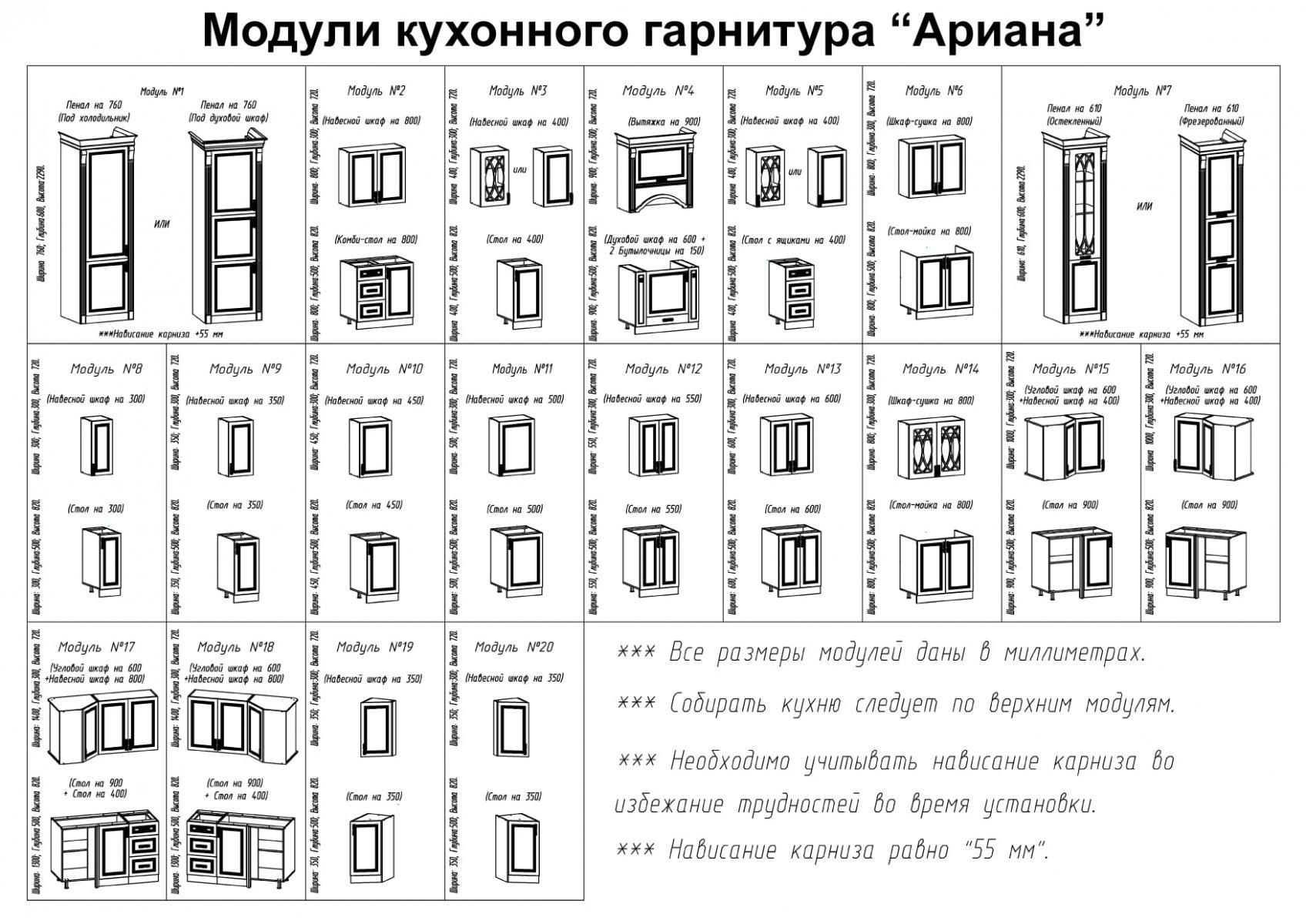 В то же время данный комплект кухни является модульным. Он состоит из отдельных функциональных блоков, которые можно объединять в комплект в зависимости от желаний клиента.