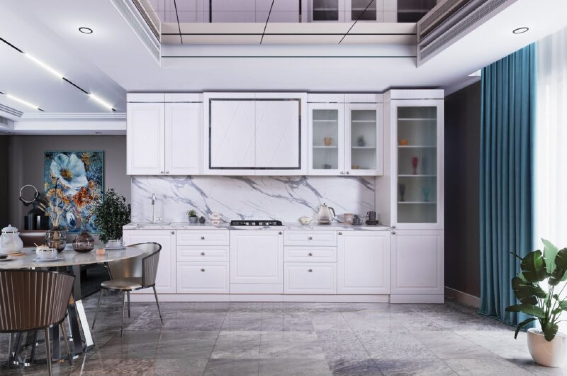 Пристенок (фартук) в цветах столешницы с соединительными планками