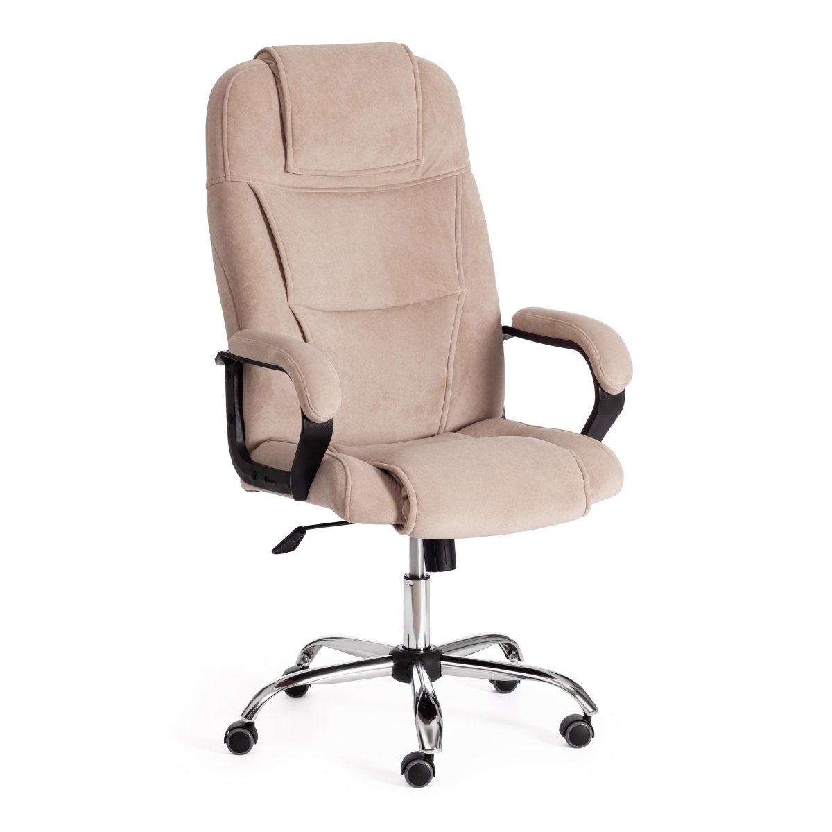 Стильный дизайн кресла BERGAMO хром (22) из коллекции OFFICE станет прекрасным дополнением в интерьере офиса, переговорной комнаты или кабинета руководителя. Модель, имеющая привлекательный дизайн и элегантный внешний вид, понравится даже самому требовательному владельцу. Надежный каркас выполнен из усиленной фанеры толщиной более 10 мм. Такой материал отличается практичностью, прочностью и основательностью. Сиденье и спинка с мягким наполнителем из пенополиуретана (до 35 кг/м2) стандартной плотности обладают долгим сроком службы, не деформируются, пропускают воздух, отводят влагу и не накапливают пыль. Хромированная крестовина устойчива, способна выдерживать большие нагрузки. Офисное кресло регулируется по высоте и наклону с фиксацией в одном положении. Бесшумные полиуретановые колесики с прорезиненными вставками позволяют легко перемещаться с места на место, не повреждая ламинат или паркет. Ролики и крестовина в креслах бренда TETCHAIR соответствуют стандарту BIFMA. Во всех креслах бренда TETCHAIR используются газлифты 3 класса, он способен выдерживать вес до 120 кг. Фиксированные пластиковые подлокотники с мягкими накладками помогут снять напряжение с плеч и шеи при длительной работе. Благодаря обивке из износостойкой высокопрочной экокожи и прочного флока модель не требует сложного ухода, не теряет своего первоначального вида долгие годы, обладает отличными эксплуатационными качествами. Экокожа, используемая при изготовлении кресла, выдерживает до 50 000 циклов на истирание по Мартиндейлу, ткань флок также выдерживает до 50 000 циклов. Ткани с плотностью более 35 000 циклов являются самыми долговечными. Компьютерное кресло BERGAMO хром (22) изготавливается в коричневом, черном, бежевом, сером, синем и белом цветах. Эргономичная модель подчеркнет безупречный вкус владельца, будет радовать своей долговечностью, красотой и практичностью продолжительное время. Офисное кресло поставляется в разобранном виде. Необходима простая сборка по прилагаемой инструкции. Максимальная нагрузка 120 кг. Страна-производитель: РОССИЯ