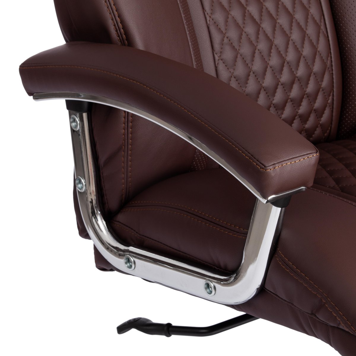 Строгое и функциональное компьютерное кресло TRUST (MAX) из коллекции OFFICE прекрасно подойдет для кабинета руководителя и переговорной комнаты, подчеркнет безупречный вкус владельца и придаст интерьеру презентабельный вид. Каркас модели выполнен из усиленной фанеры толщиной более 15 мм. Такой материал отличается повышенной прочностью и надежностью. Комфортное сиденье с мягким наполнителем из пенополиуретана высокой плотности (до 35 кг/м2) легко подстраивается под контуры тела, не теряет форму на протяжении долгого времени. Регулировка высоты и наклона с фиксацией в одном положении помогут расположиться с комфортом для продолжительной работы. Металлическая хромированная крестовина надежна, основательна и устойчива. Независимые пружинные блоки в сиденье обеспечивают ортопедический эффект всей конструкции. Ролики из полиуретана с прорезиненными вставками бесшумны, не повреждают напольное покрытие. Ролики и крестовина в креслах бренда TETCHAIR соответствуют стандарту BIFMA. Во всех креслах бренда TETCHAIR используются газлифты 3 класса, он способен выдерживать вес до 150 кг. Уникальной особенностью данного кресла является то, что в нем используется усиленный механизм толщиной 4 мм. Съемный фиксированный подголовник и металлические хромированные подлокотники с мягкими накладками обеспечат правильную посадку, снизят нагрузку на позвоночник. Офисное кресло TRUST (MAX) обито высококачественной износостойкой экокожей или прочной тканью. Экокожа , используемая при изготовлении кресла, выдерживает до 50 000 циклов на истирание по Мартиндейлу, мягкая ткань рогожка выдерживает до 40 000 циклов. Ткани с плотностью более 35 000 циклов являются самыми долговечными. Мебель, в которой используются такие ткани можно использовать не только дома но и в ресторанах, салонах красоты, приемных. Модель представлена в нескольких цветовых вариантах: черном, коричневом и сером. Благодаря усиленному механизму компьютерное кресло выдерживает большой вес. Максимальная нагрузка модели 150 кг. Модель поставляется в разобранном виде. Необходима простая сборка по прилагаемой инструкции.