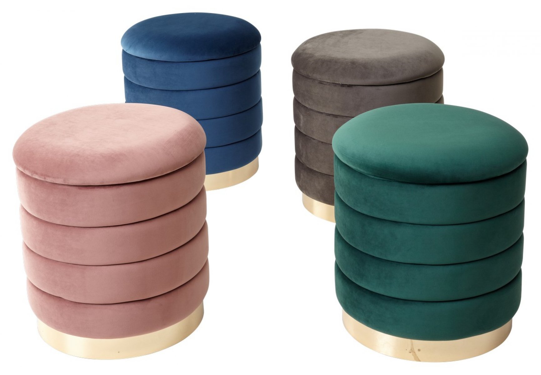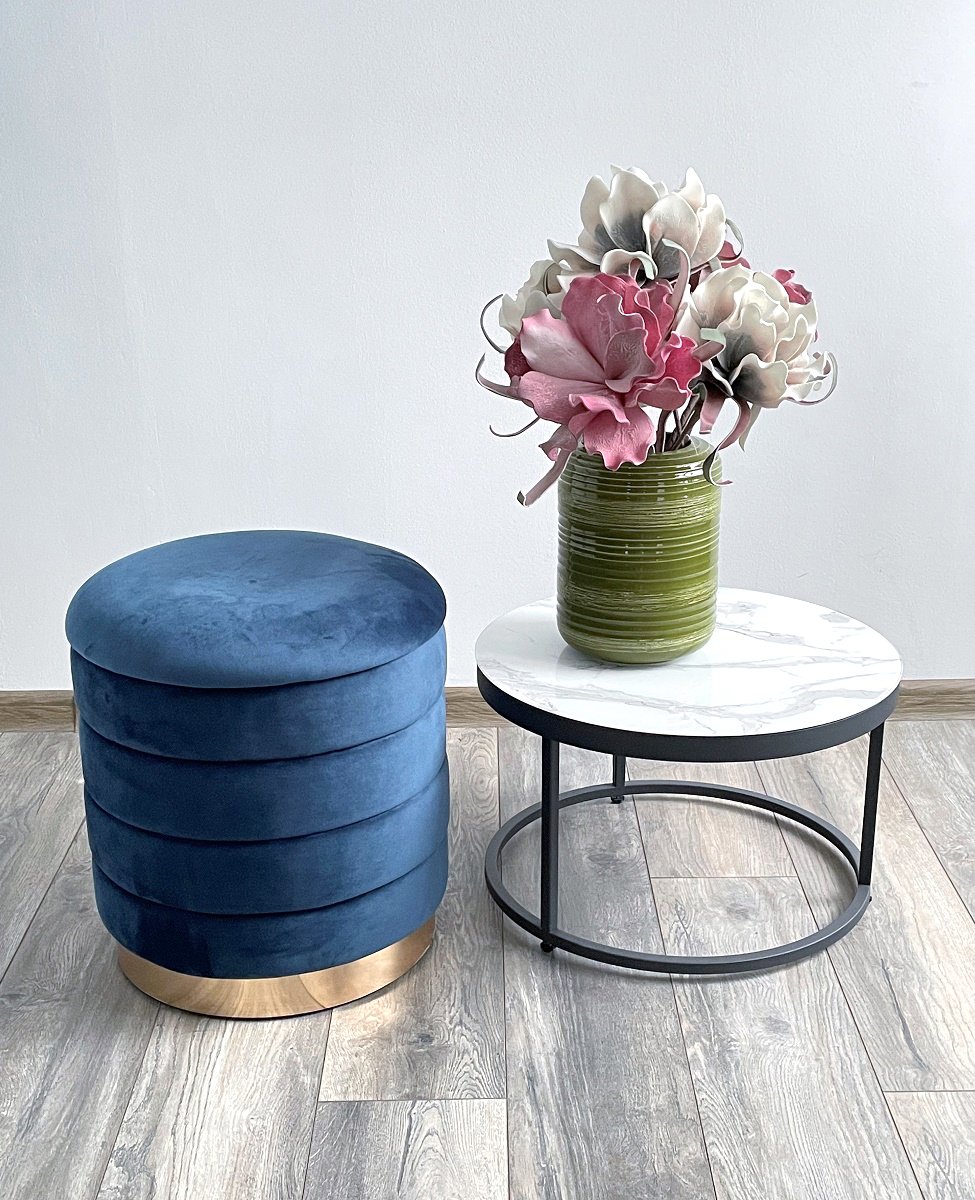 Пуф для гостиной ФРЕД синий #29, велюр / золотой каркас М-City