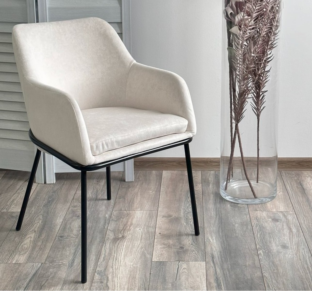 Стул АЛИСТЕР, цвет RAIN 1 молочный велюр / черный каркас М-City