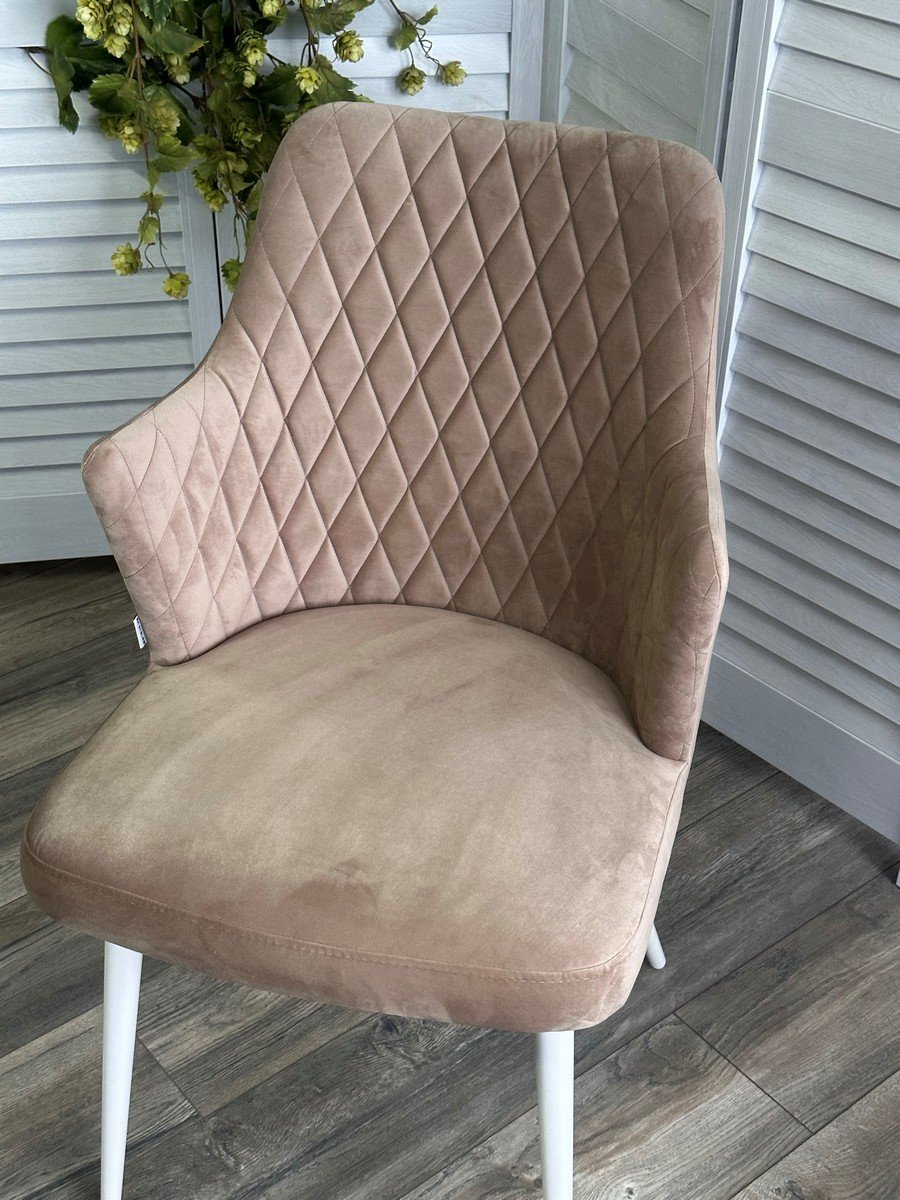 Стул HERMAN 360 град. БЕЖЕВЫЙ #5, велюр / белый каркас М-City