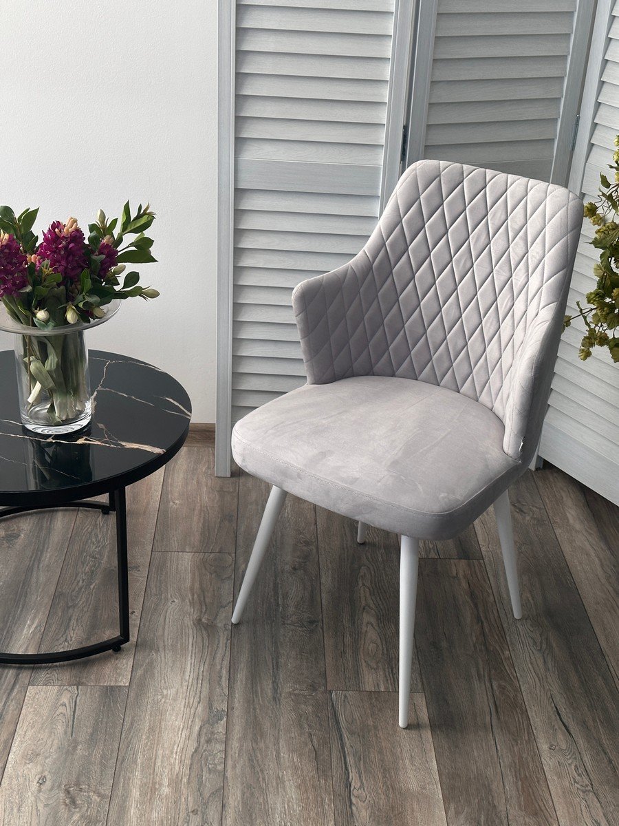 Стул HERMAN 360 град. BM-4 СВЕТЛО-СЕРЫЙ, велюр / белый каркас М-City