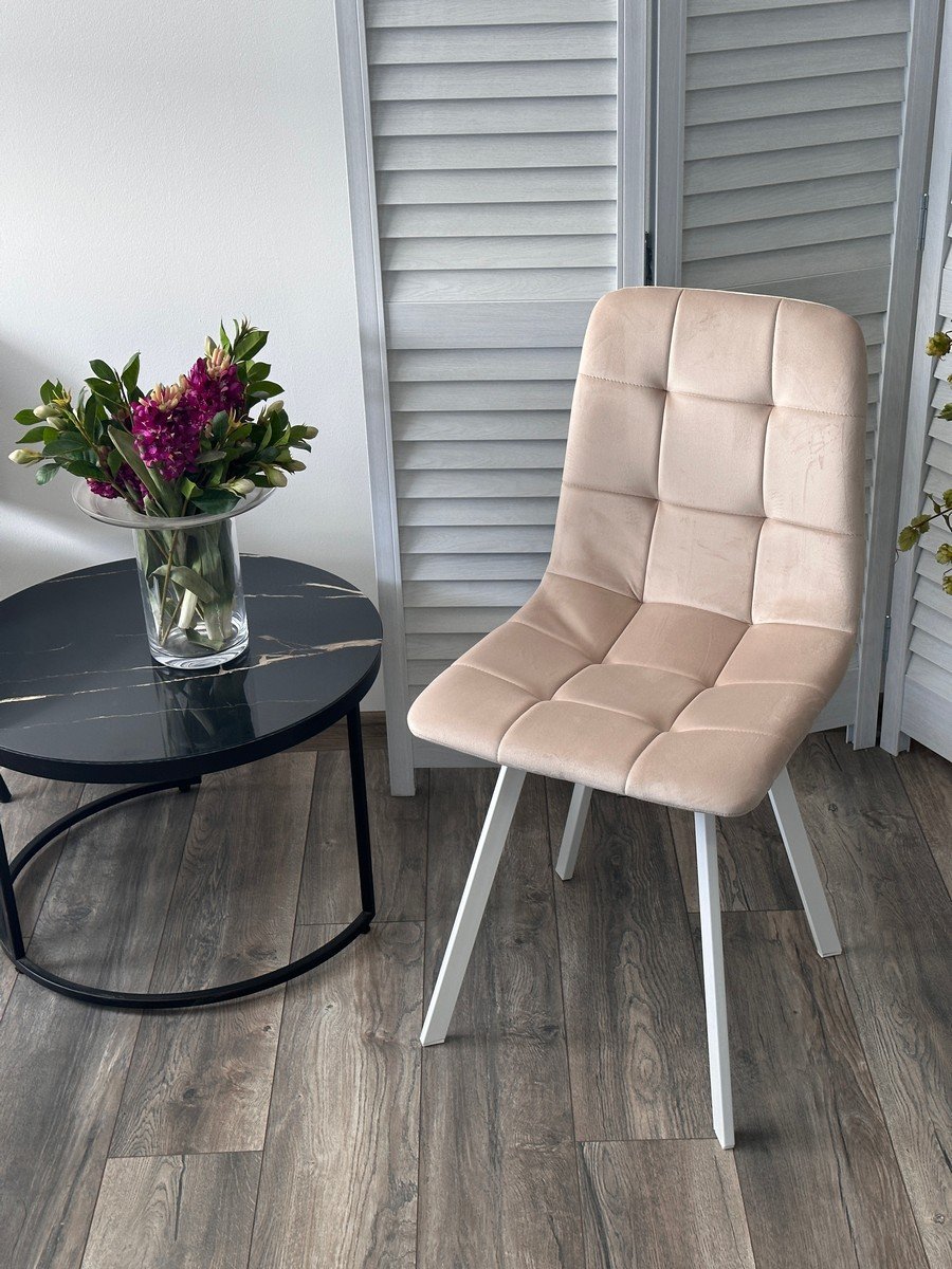 Стул РИЧИ, цвет H-06 Бежевый, велюр / белый каркас М-City