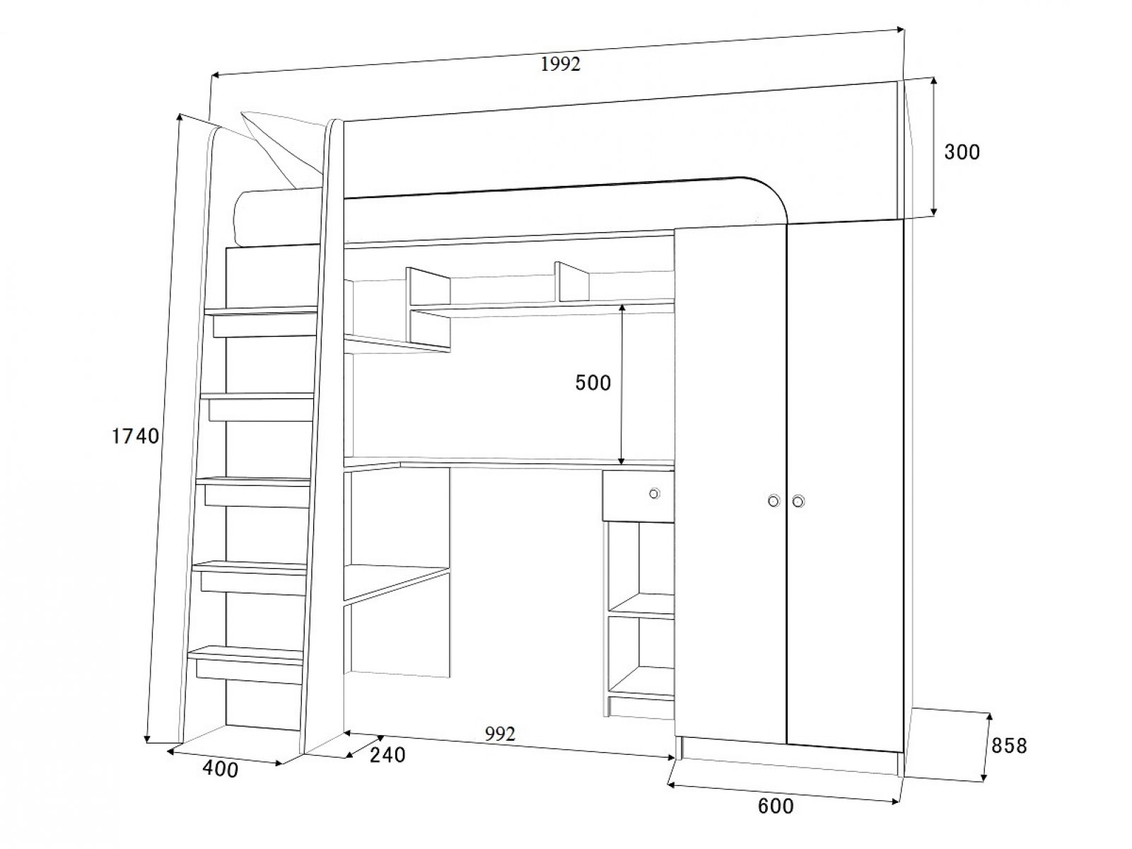 АСТРА 10 Кровать-чердак детский 80*195 (левая/правая)