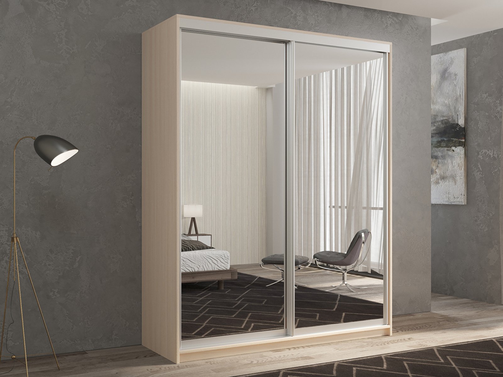 КААППИ-1 Шкаф-купе 2-х дверный с зеркалом 120*45