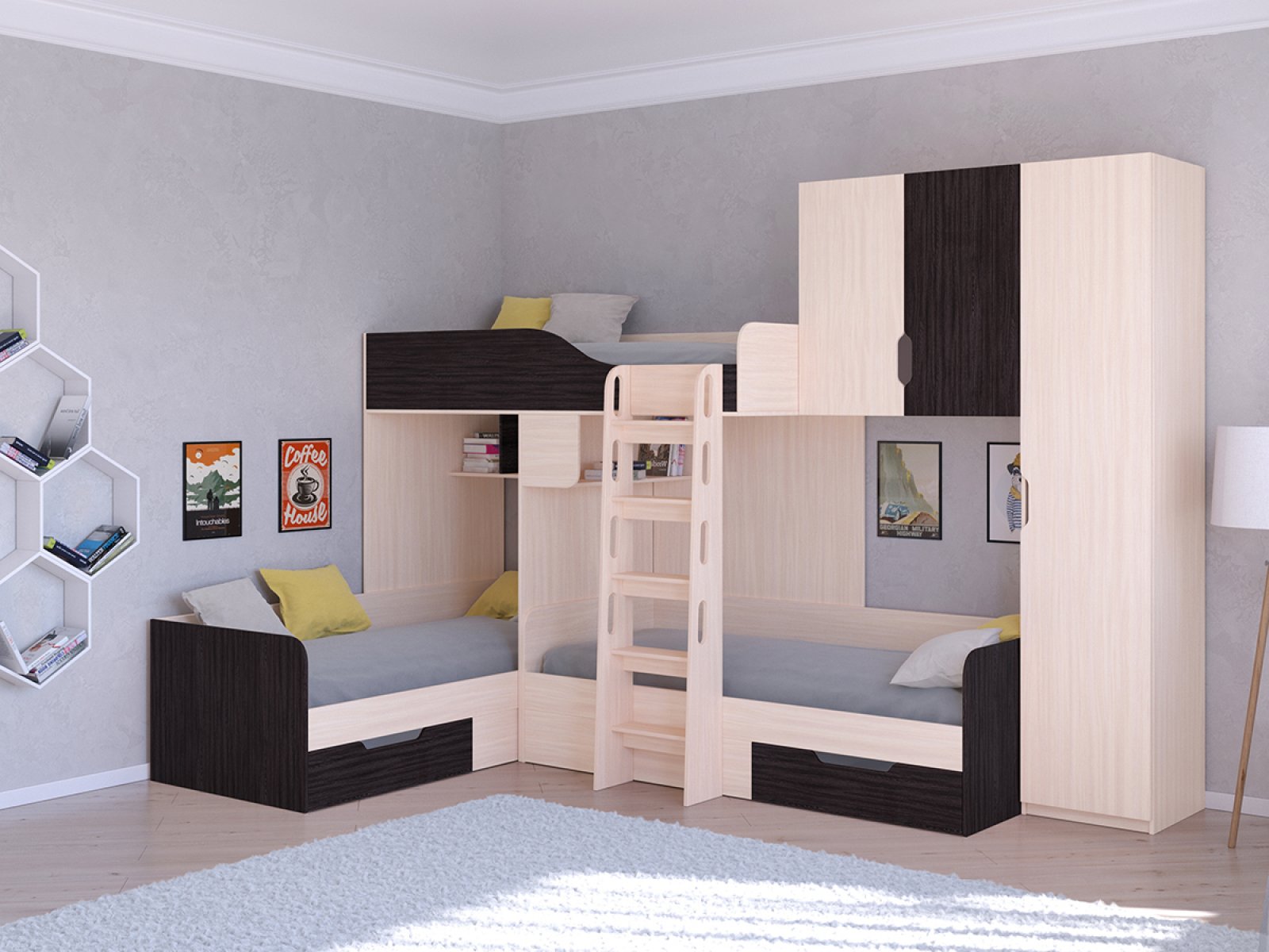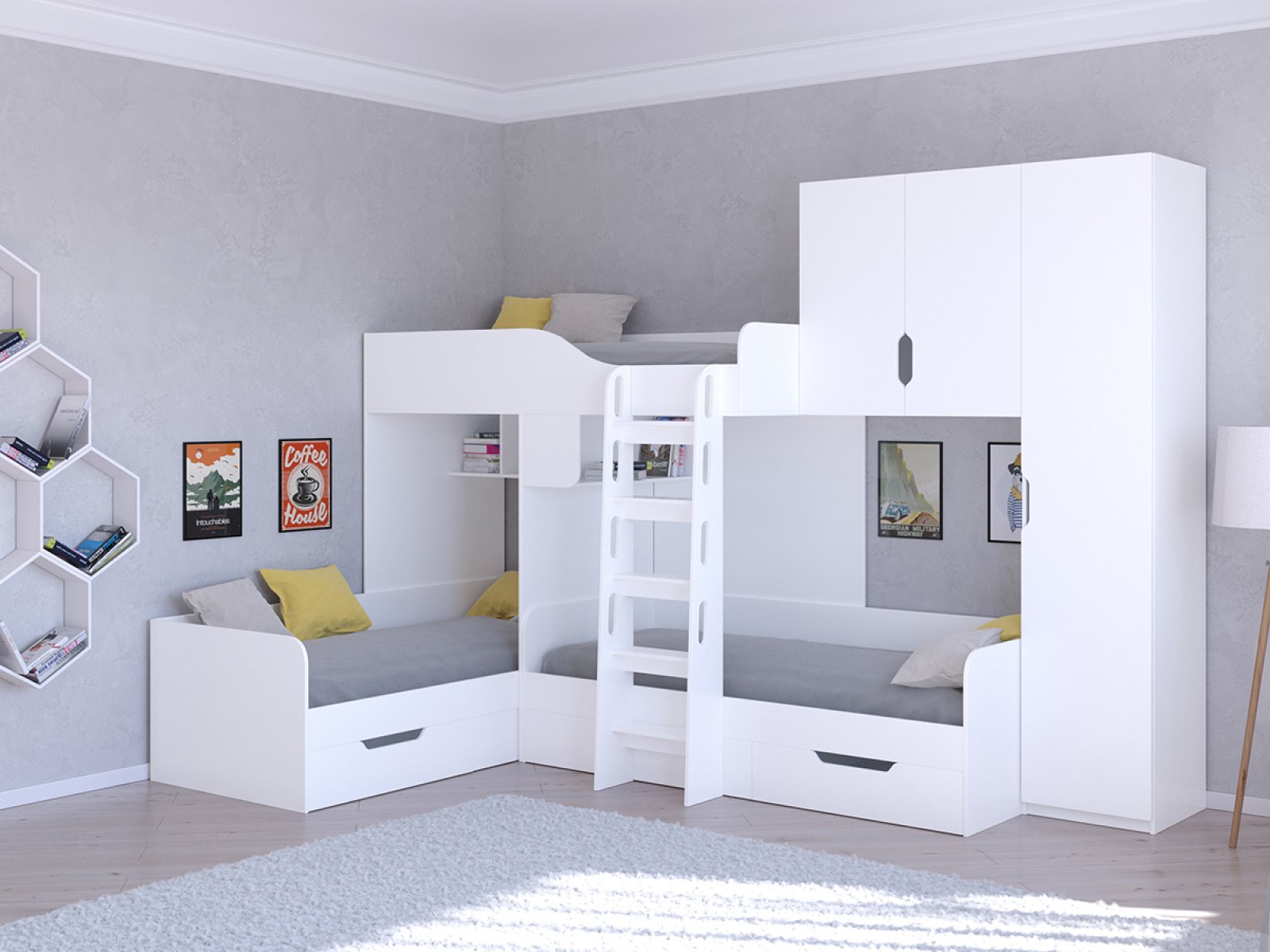 ТРИО/2 Кровать детская 3-х местная, 2-х ярусная