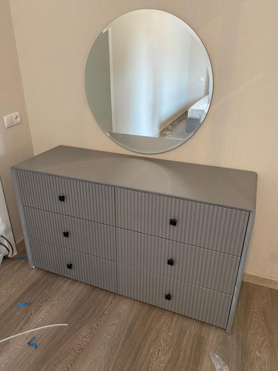 Опоры и ручки – ABS.пилястры- МДФ , зеркало над комодом с фацетом