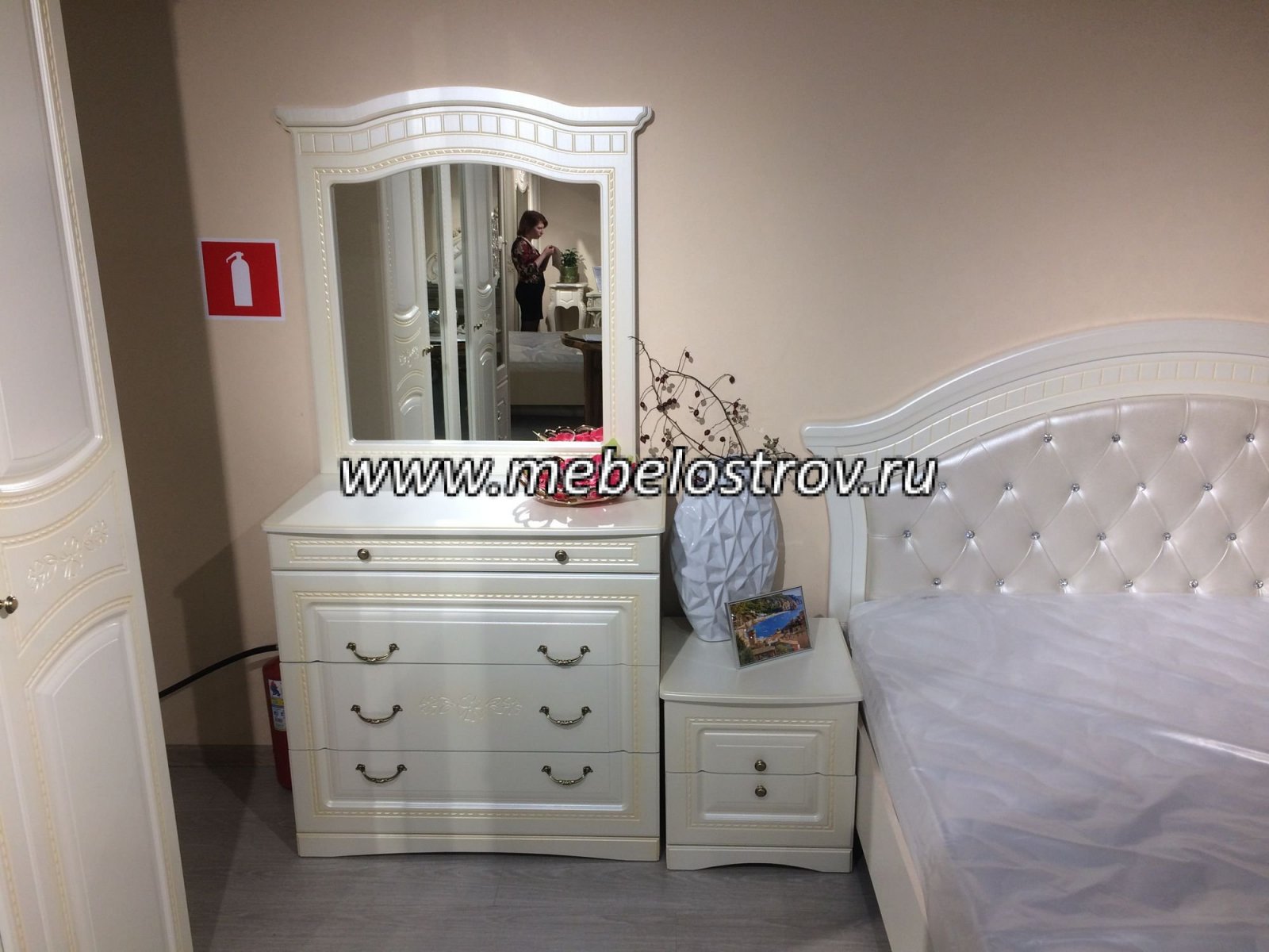 Каркас – ДСП, цвет – ваниль, фасад – МДФ с фрезеровкой, покрытый пленкой ПВХ, отделка – полиуретановые лакокрасочные материалы (патинирование).