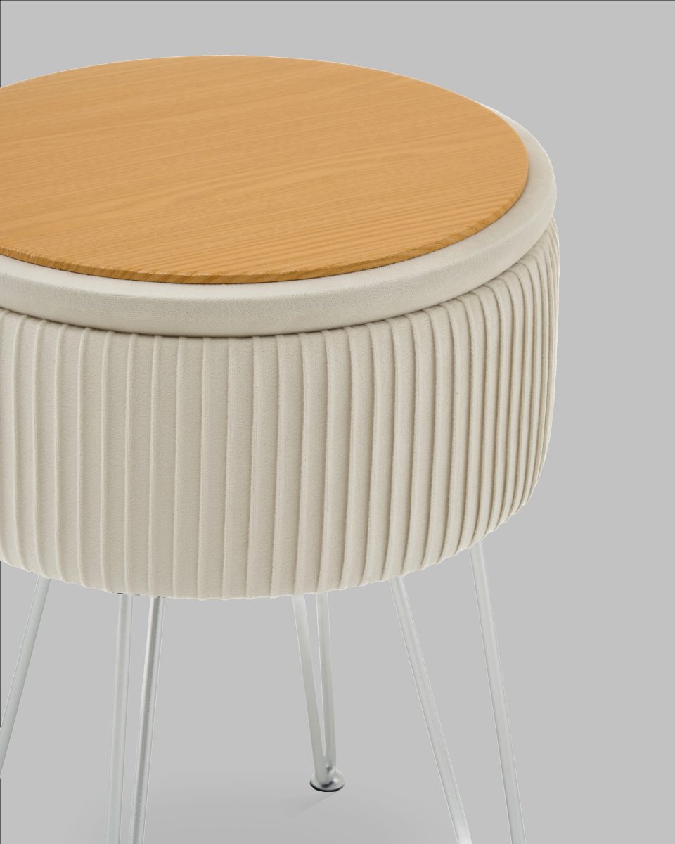 Пуф Астор бежевый серебряные ножки