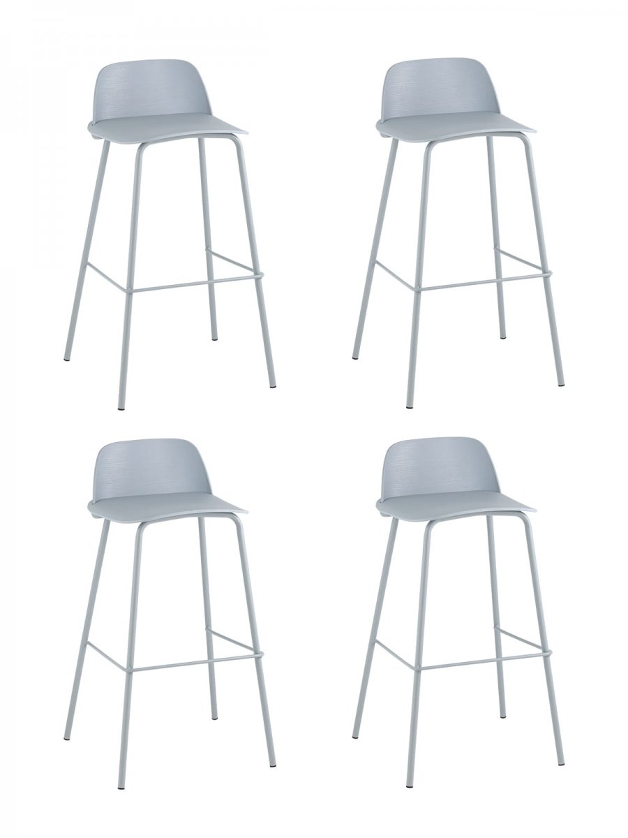 Комплект из четырех стульев барных Mist пластиковое сиденье, серо-голубой, ножки металл