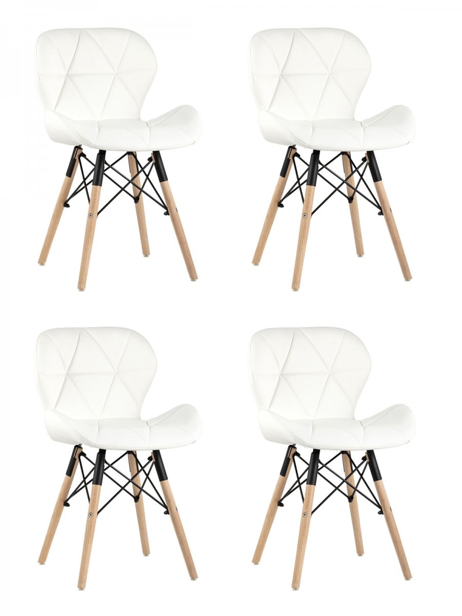 Комплект из четырех стульев Бон экокожа белый ножки из массива бука