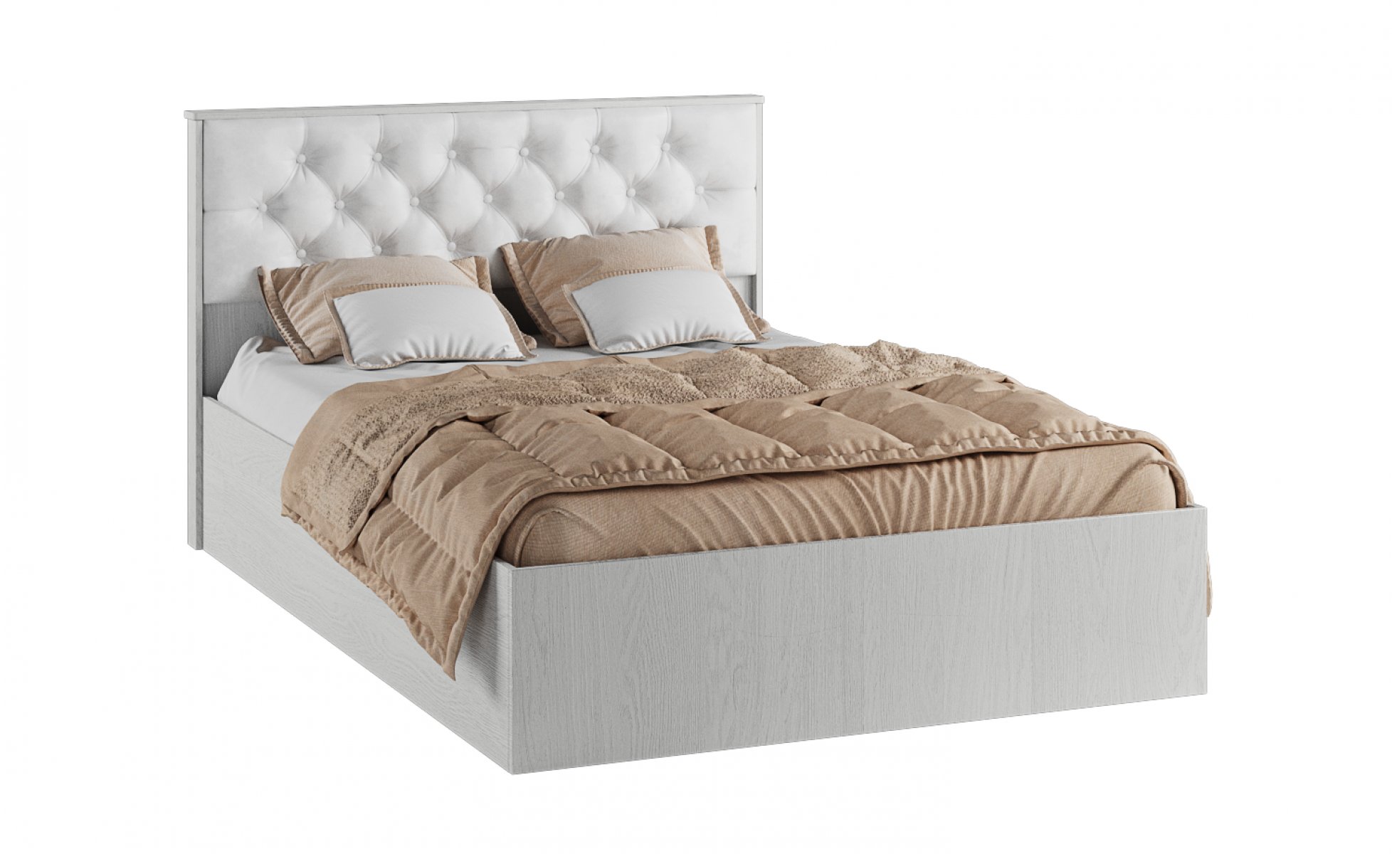 Кровать из коллекции Модена станет украшением Вашей спальни. Спинка кровати комплектуется мягкой белой вставкой из экокожи со стяжкой, что дарит Вам дополнительный комфорт и разбавляет интерьер. Комплектуется настилом из ДСП.