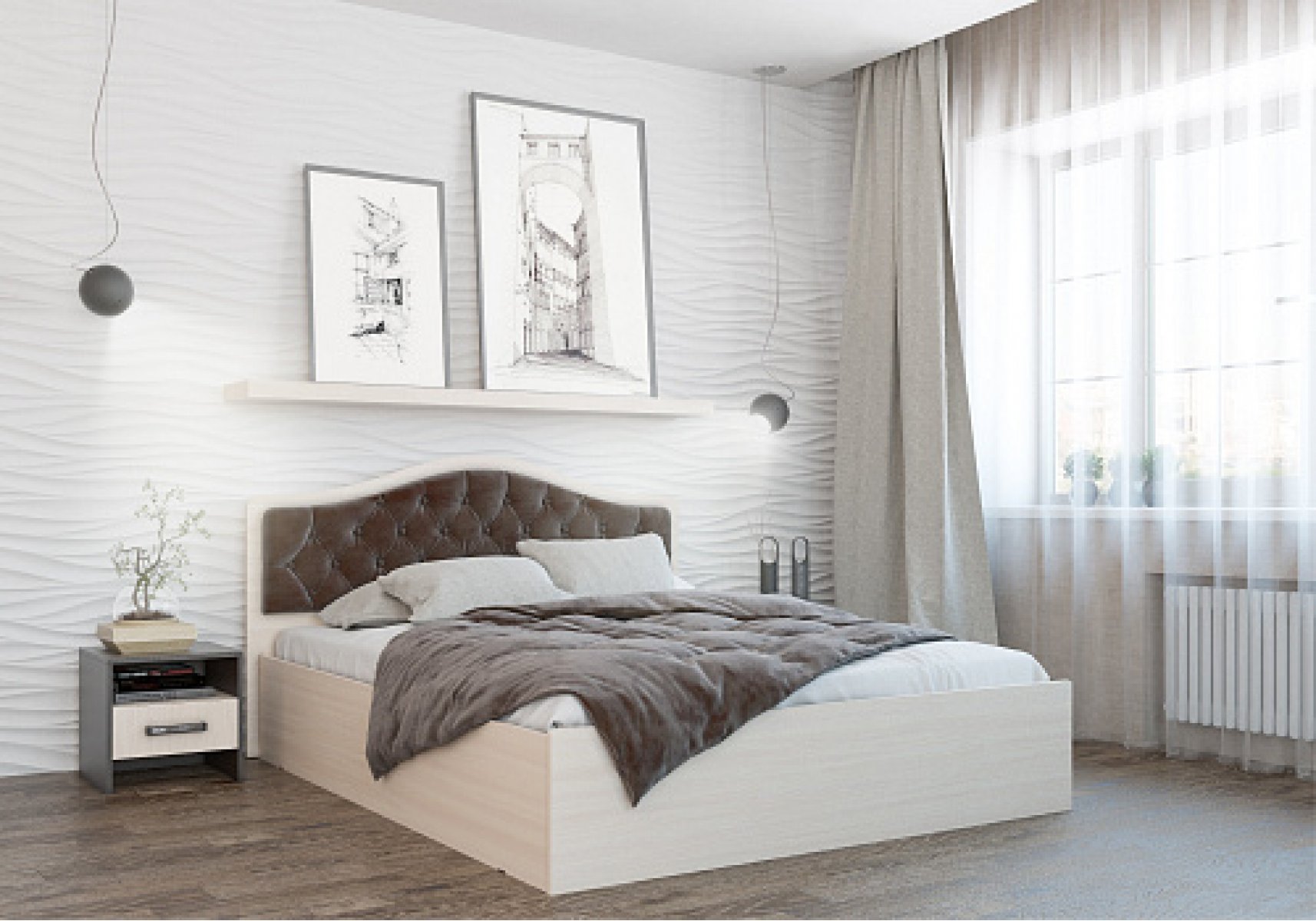 Кровать с ортопедическим основанием Дели 140х200, дуб молочный/шоколад