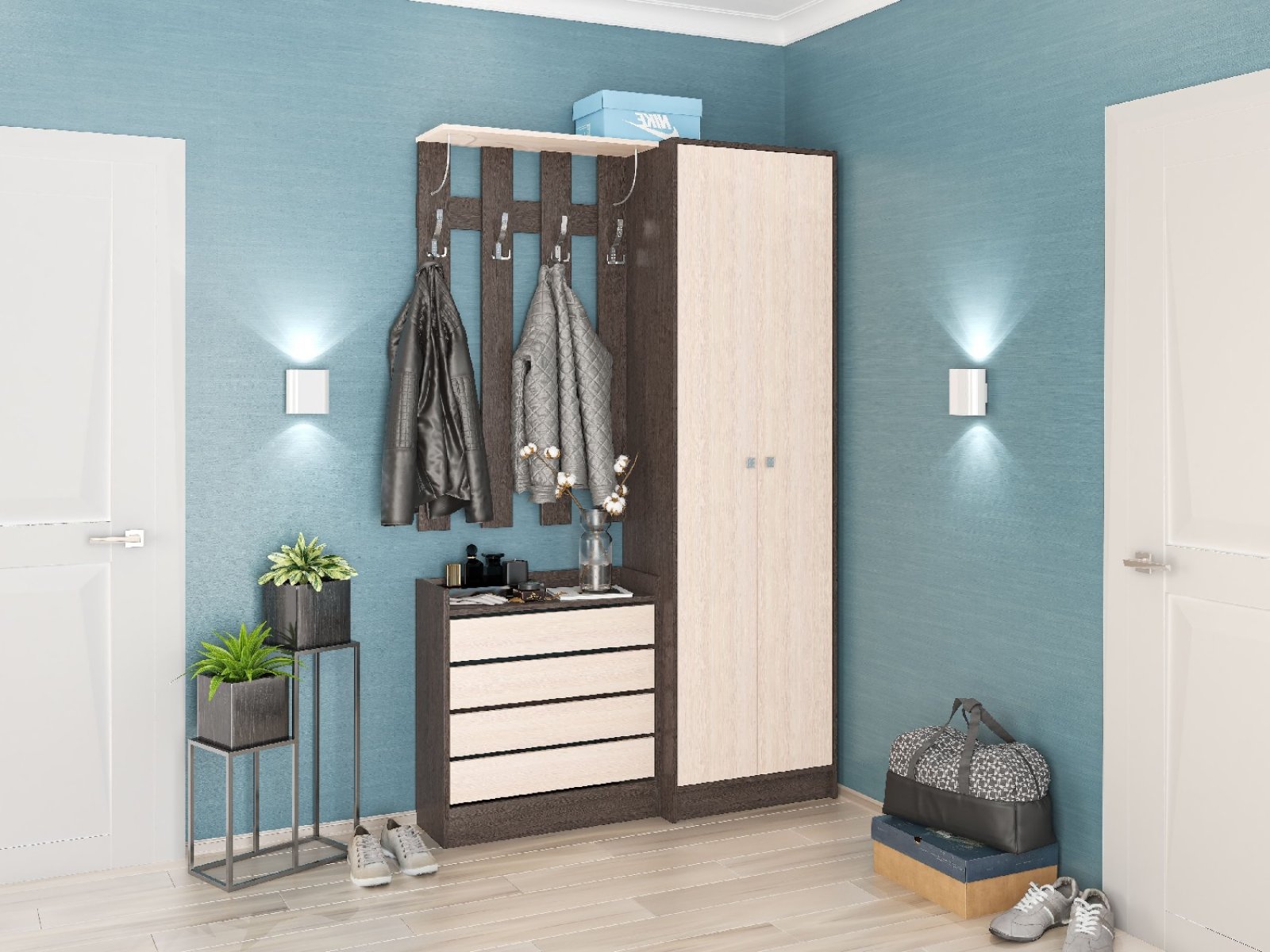 Ямайка- стильная и современная модульная программа мебели для прихожей. В зависимости от размеров помещения, модули можно размещать отдельно, либо создавать композицию из нескольких предметов. Комплект Ямайкапозволит Вам создать неповторимый образ прихожей, который будет радовать Вас долгие годы. Выпускается в 4-х декорах на выбор. Комплект 2 состоит из обувницы, открытой вешалки и двустворчатого шкафа.