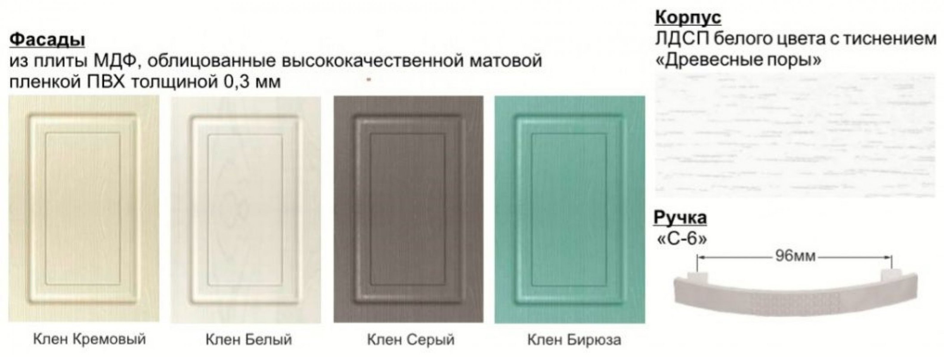 Цвет: клен бирюза, клен серый, клен белый, клен кремовый