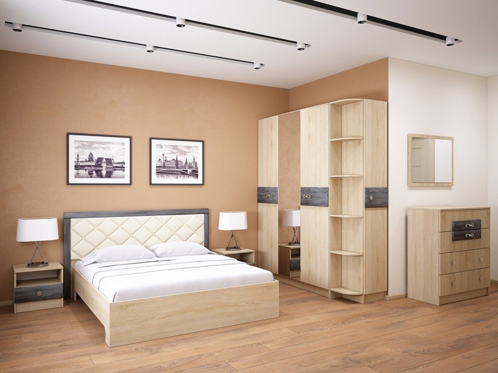 Спальня Мадлен. Комплект 1, дуб шале серебро