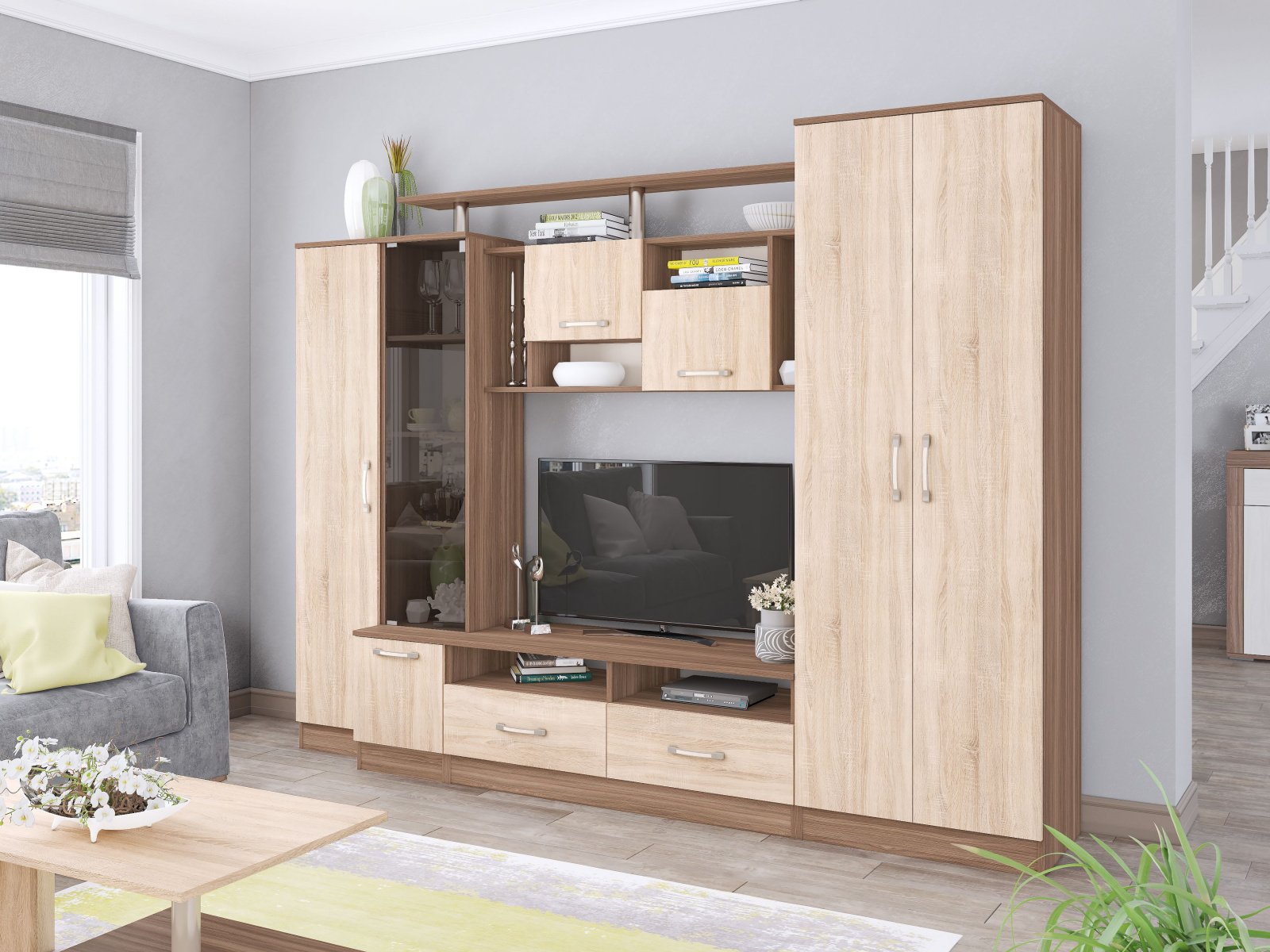 ГостинаяОскар 5обладает отличной функциональностью и комфортом при ежедневной эксплуатации. Эти необходимые свойства обеспечивает наличие нескольких вместительных секций, позволяющих с удобством разместить все нужные вещи. Продуманное цветовое решение мебели гарантирует ее совместимость с практически любым современным интерьером.
