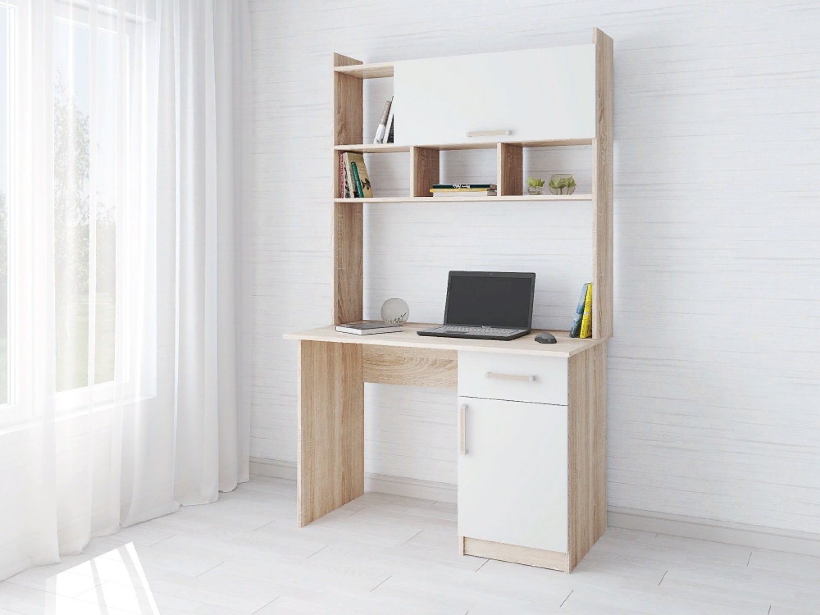 Стол компьютерный Квартет-10, дуб сонома/белый