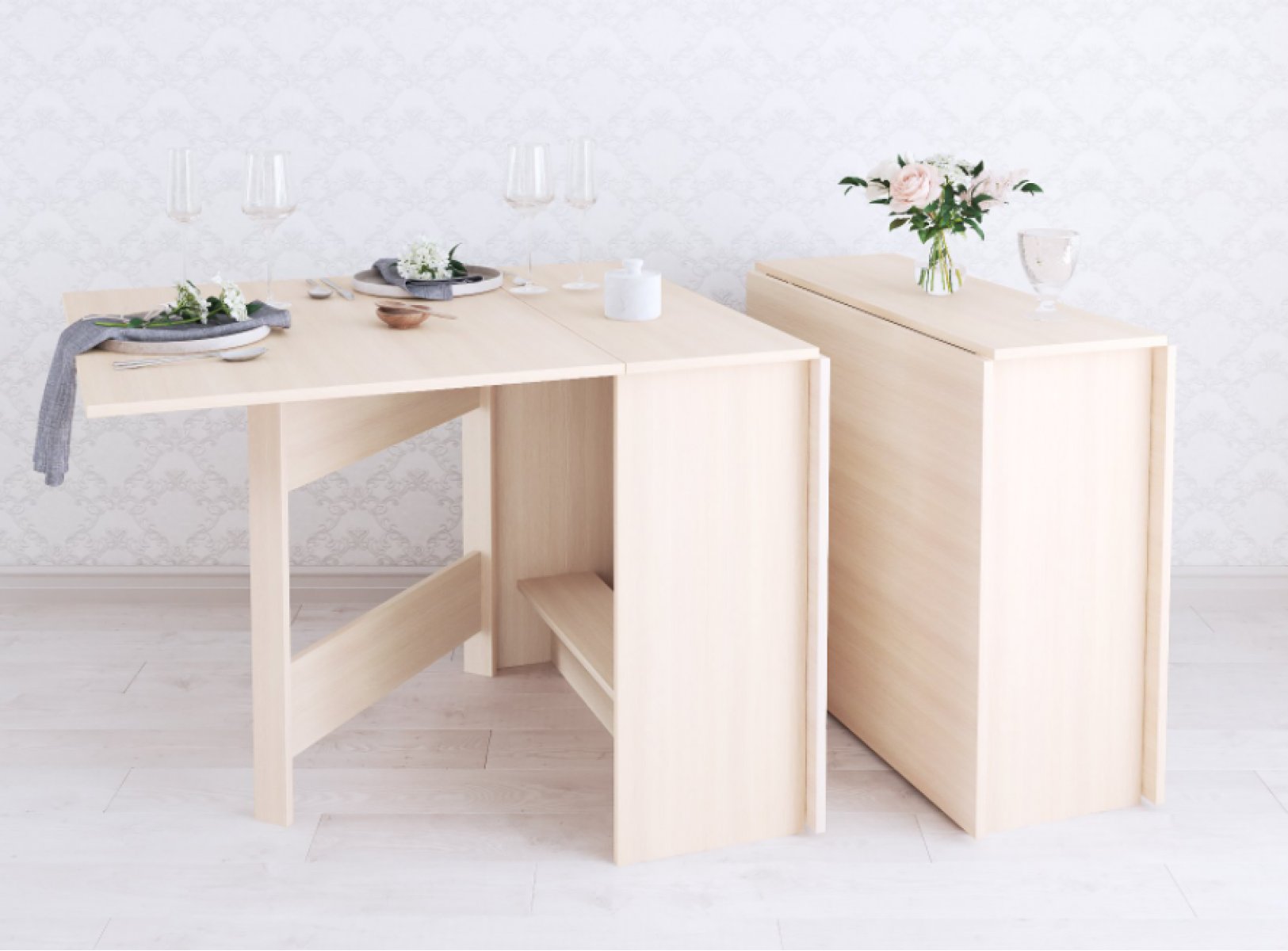Раскладной стол для кухни - не прихоть, а скорей необходимость в малогабаритках и квартирах-студиях, где каждый метр важно использовать рационально. Данная модель имеет 3 положения: полностью сложенный, разложенный наполовину и полностью разложенный. Модель установлена на пластиковые подпятники, предохраняющие напольные покрытия от повреждения, а значит Вам не нужно бояться поцарапать пол.