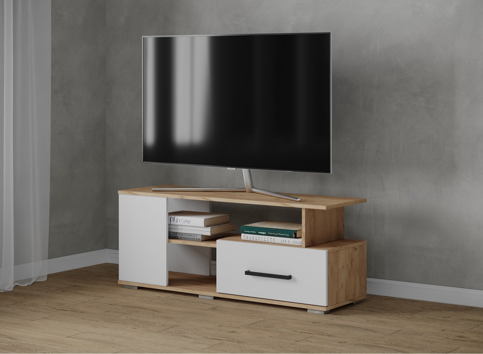 Тумба под ТВ Парус 4, дуб крафт золотой/белый